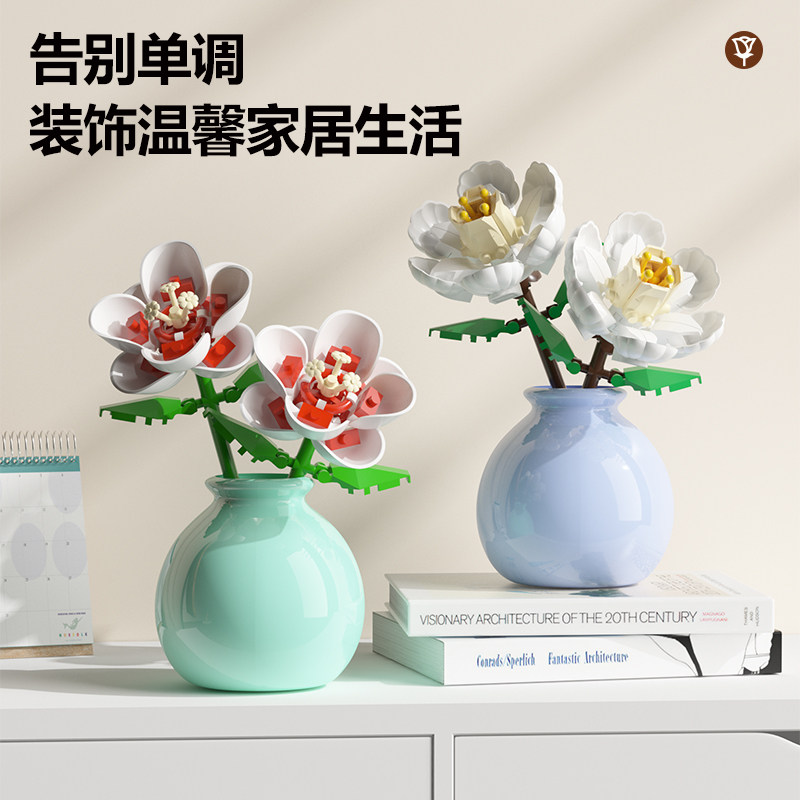 积惠插花小盆栽拼装积木含花瓶小颗粒拼搭积木玩具桌面摆件M3177