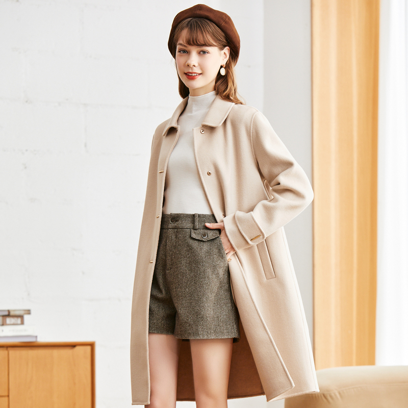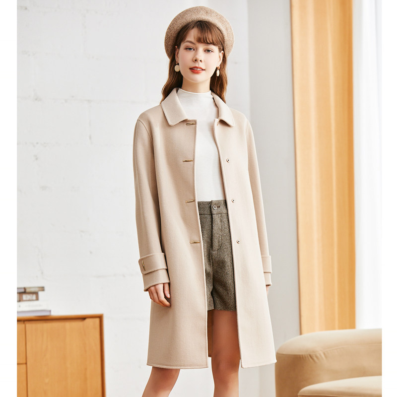 betu百图毛呢外套女小香风纯羊毛双面呢中长款大衣2026年春冬新款