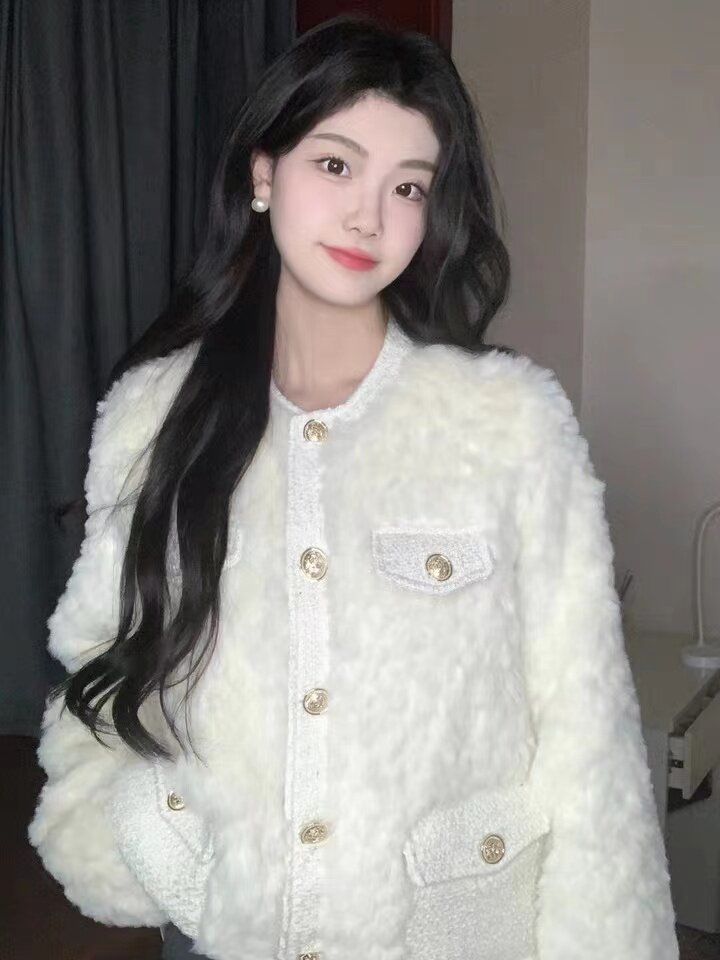 气质小香风外套女2026冬季新款高级感羊羔毛绒白色毛毛环保皮草潮