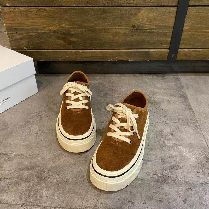 厚底磨砂牛皮板鞋女鞋2025新款秋季百搭真皮透气软底不累脚休闲鞋