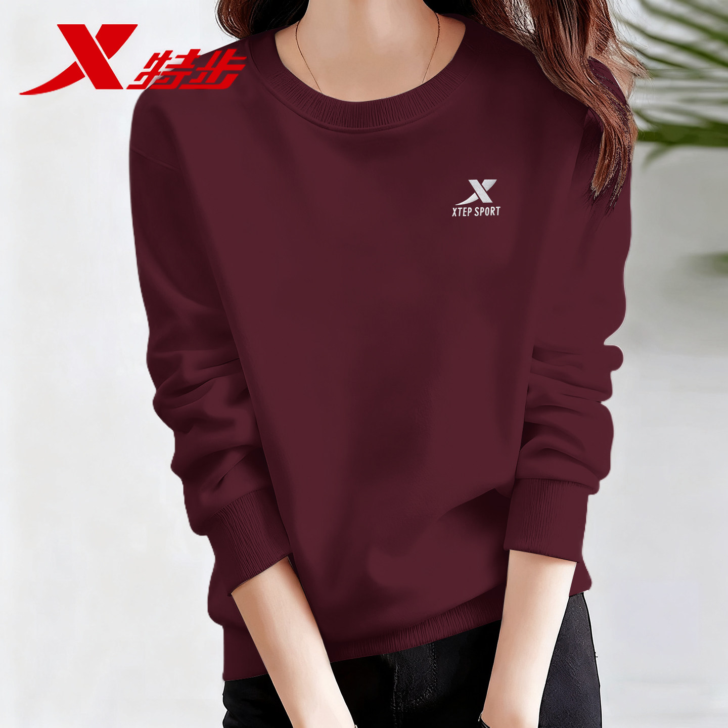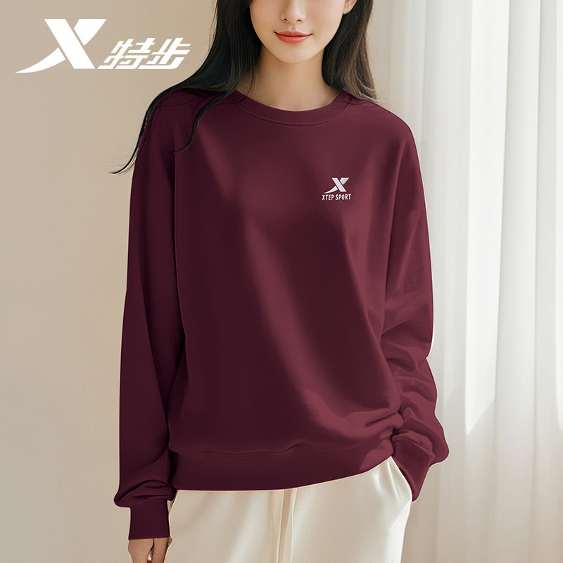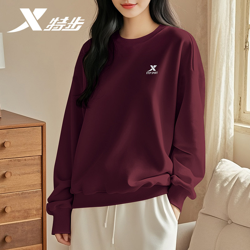 特步加厚加绒卫衣女款2026新款冬季官方旗舰店正品休闲套头运动服