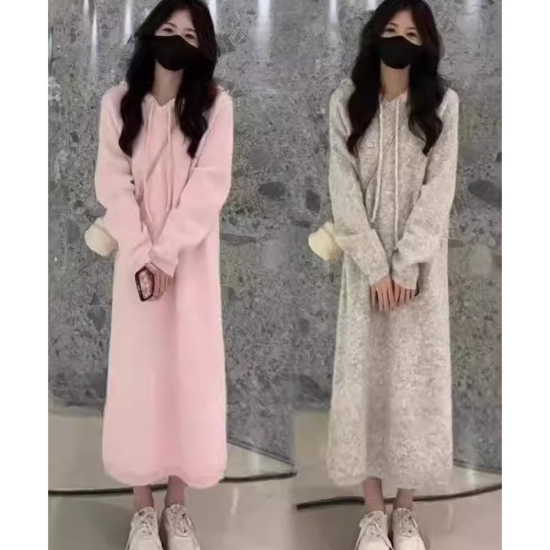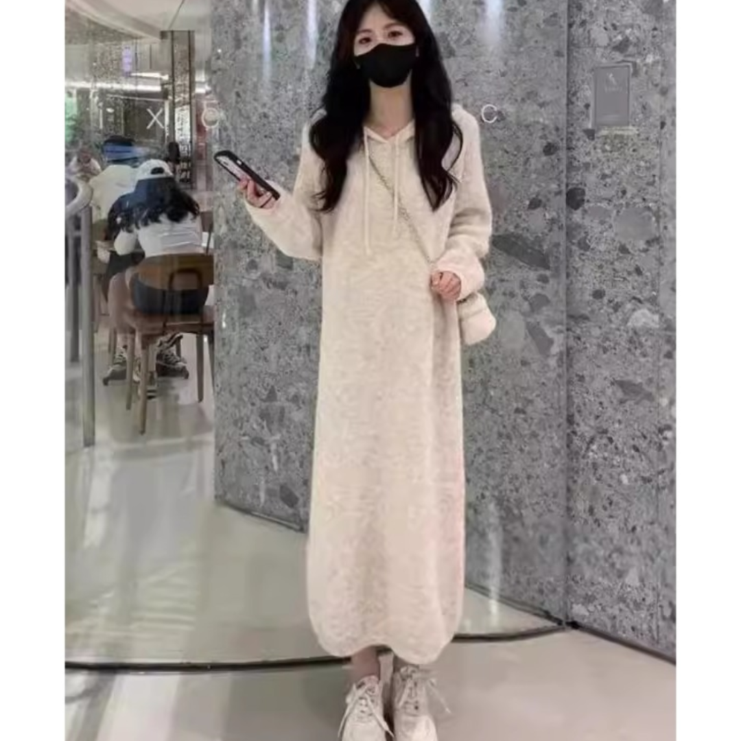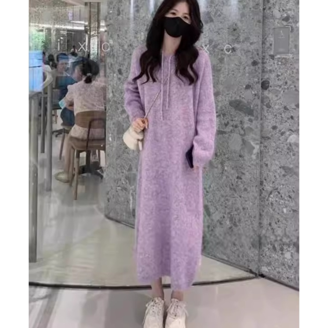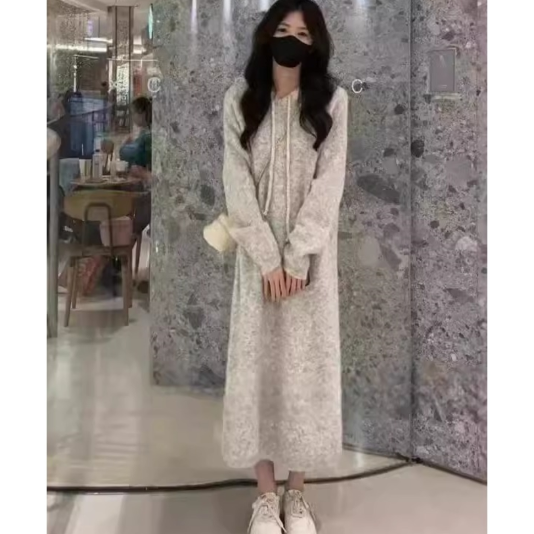 慵懒风高级感时尚连帽针织连衣裙女秋冬小个子宽松显瘦打底毛衣裙
