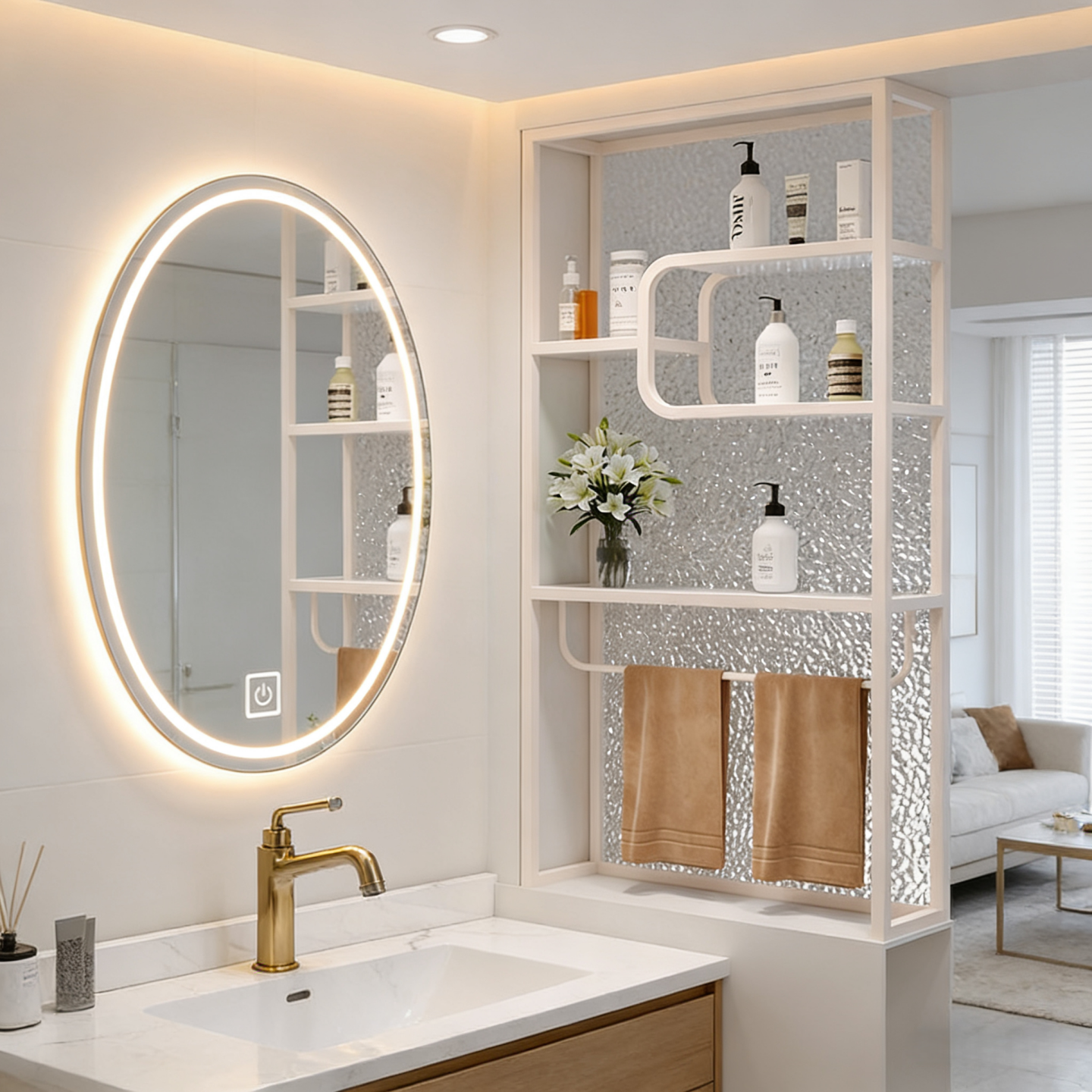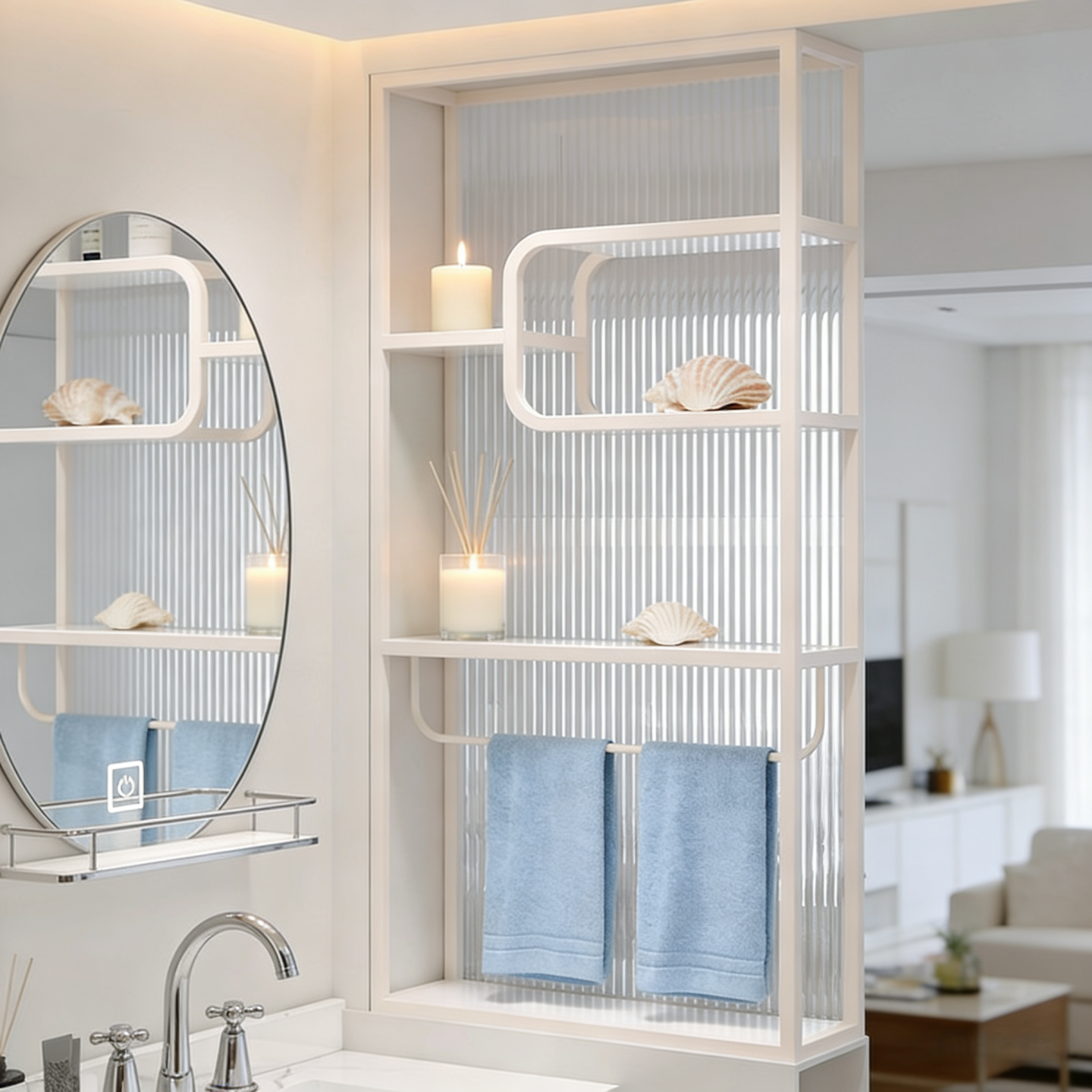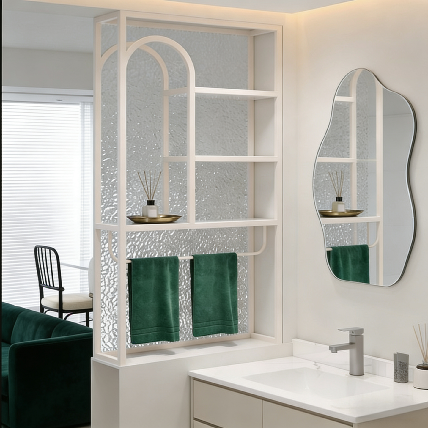 卫生间半墙隔断屏风客厅洗漱台干湿分离设计浴室置物架简约轻奢款