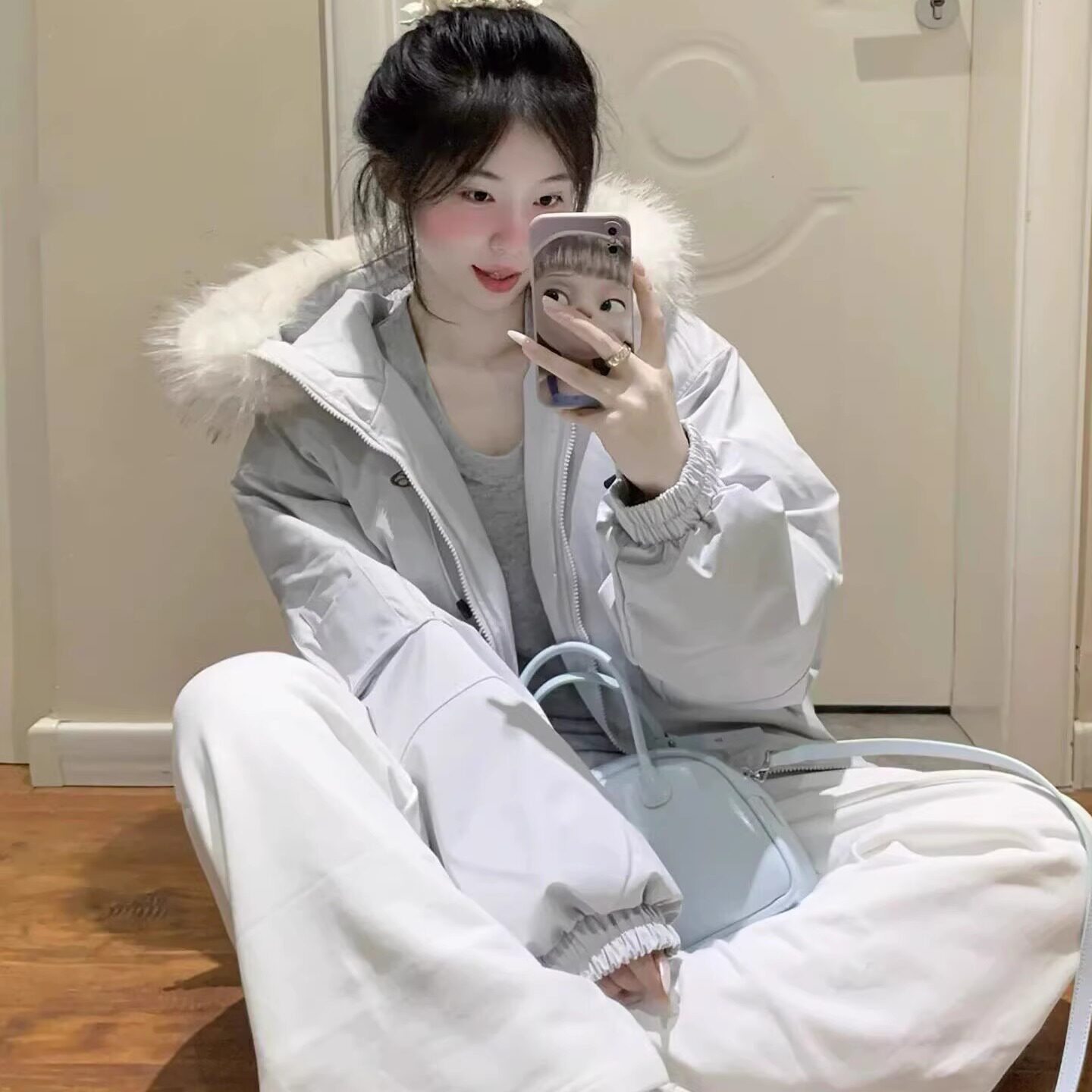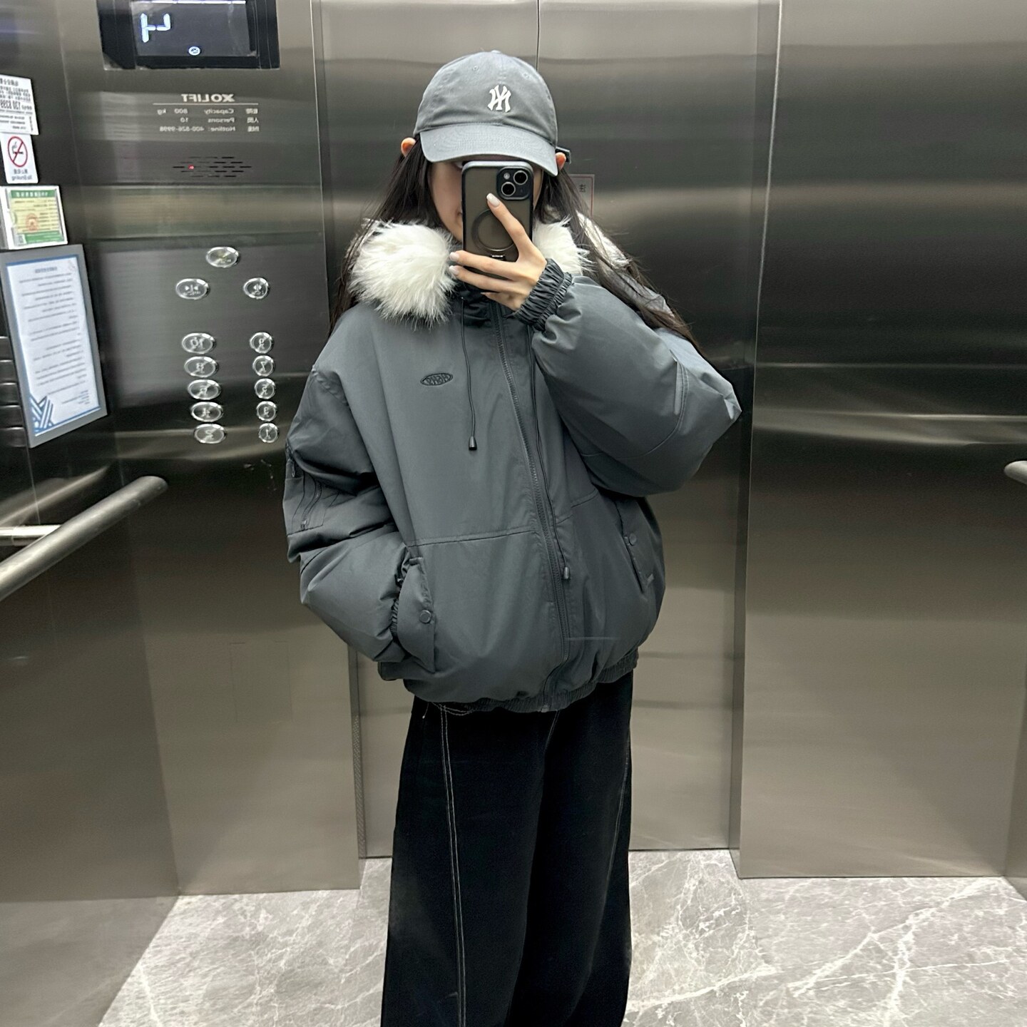 休闲工装羽绒棉服女2025冬装新款小个子大毛领派克服加厚宽松外套