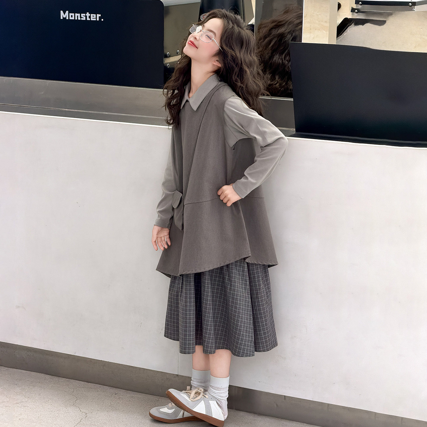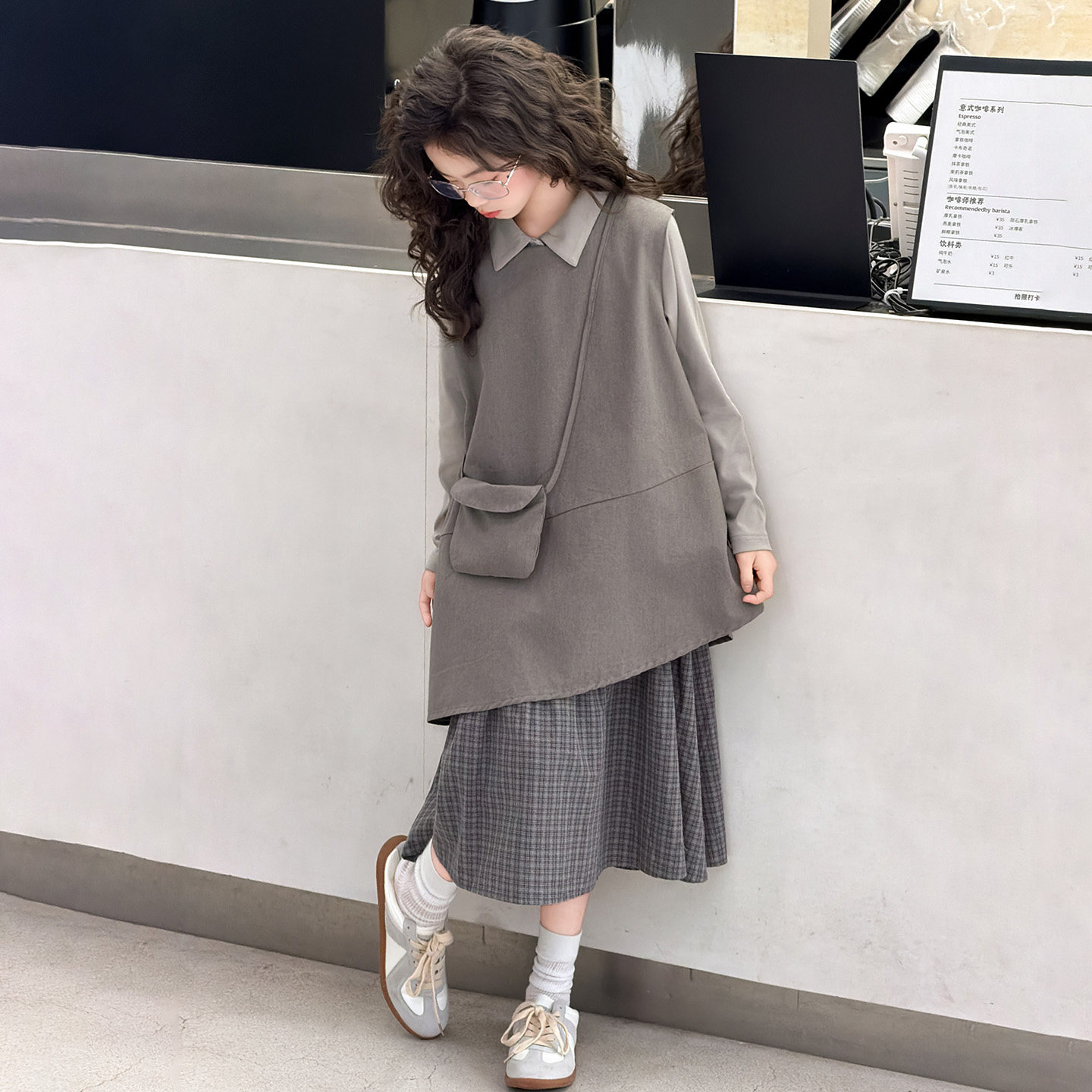 女童韩系连衣裙套装2026春季新款女孩大童超好看高级感裙子三件套