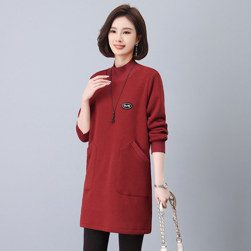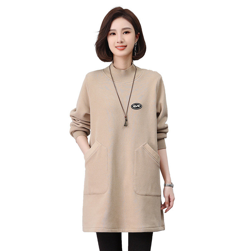 加绒加厚妈妈小个子短款长袖连衣裙秋冬新款遮肚子显瘦气质打底裙