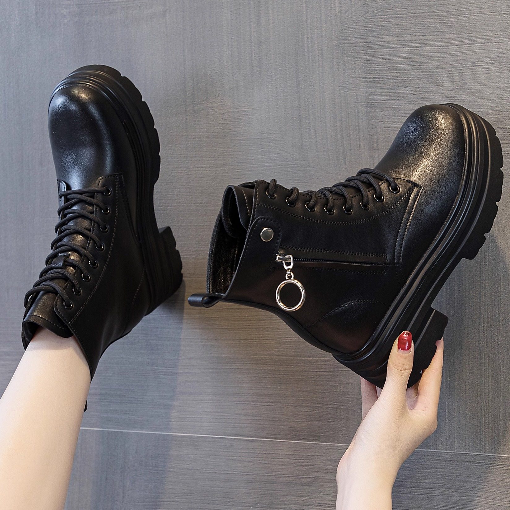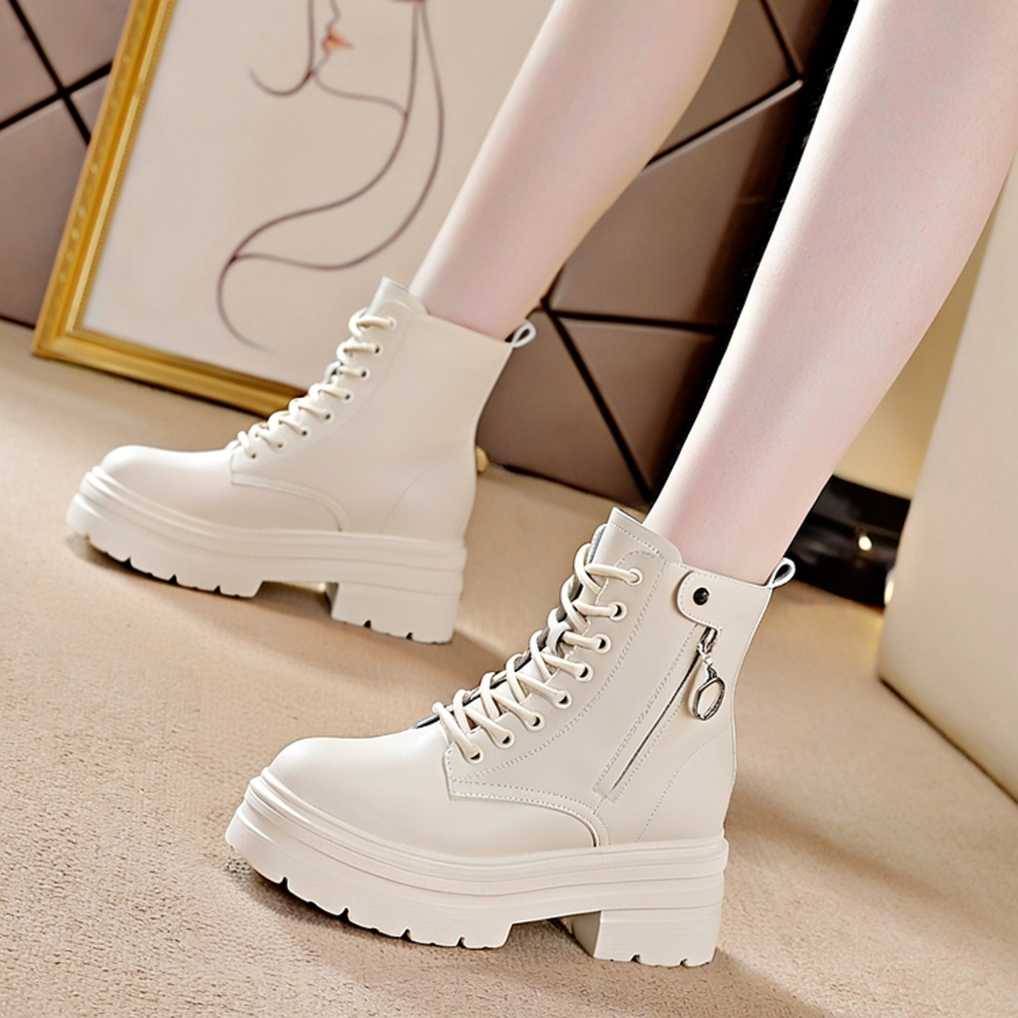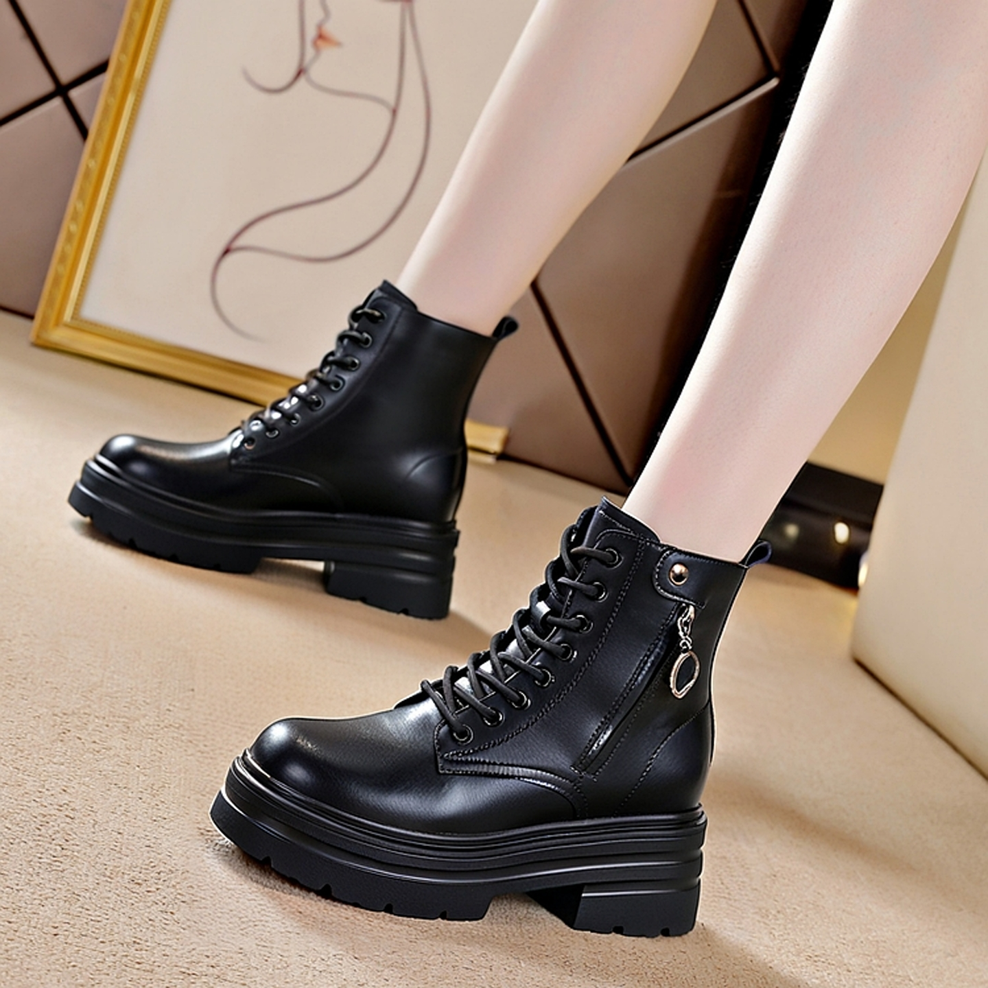 真皮内增高马丁靴女款2026新款冬季加绒小个子厚底短靴软底不累脚
