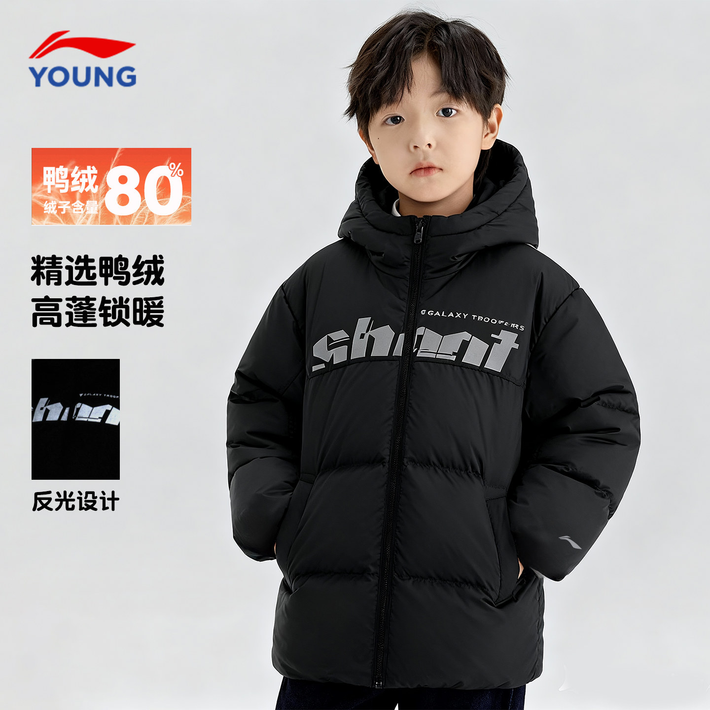 311线报网描述:李宁儿童男款鸭绒2024新款羽绒服保暖外套