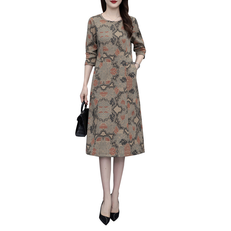 中年妈妈秋冬碎花连衣裙短款早秋小个子穿搭大码直筒遮肚子过膝裙