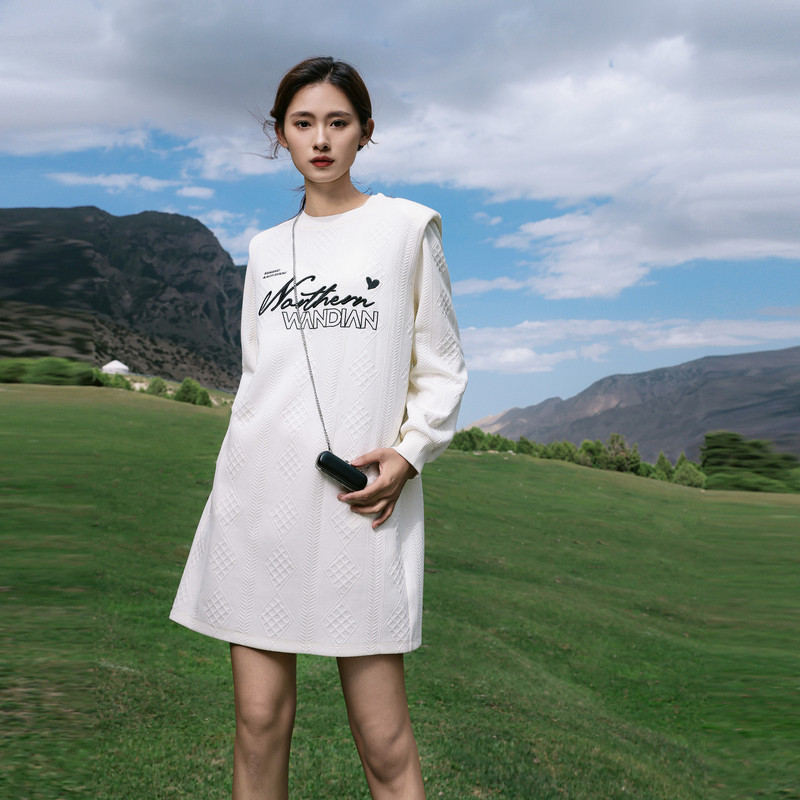 婉甸2025乳白色长袖连衣裙优雅风H型1241N13SX3