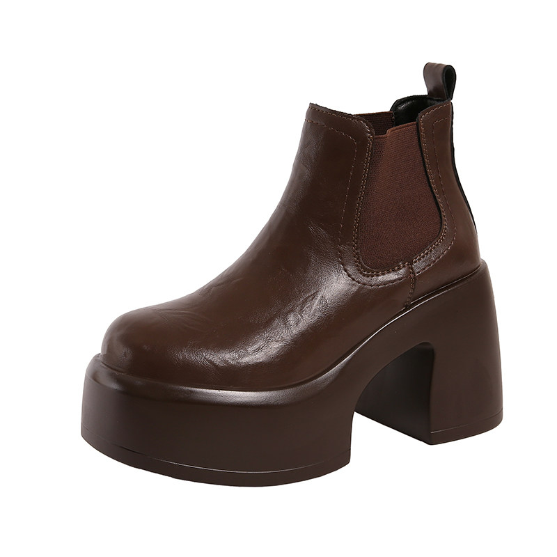品牌真皮高跟烟筒靴女2025秋冬季新款小个子增高短靴厚底马丁靴女