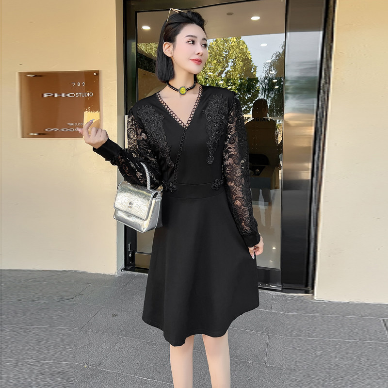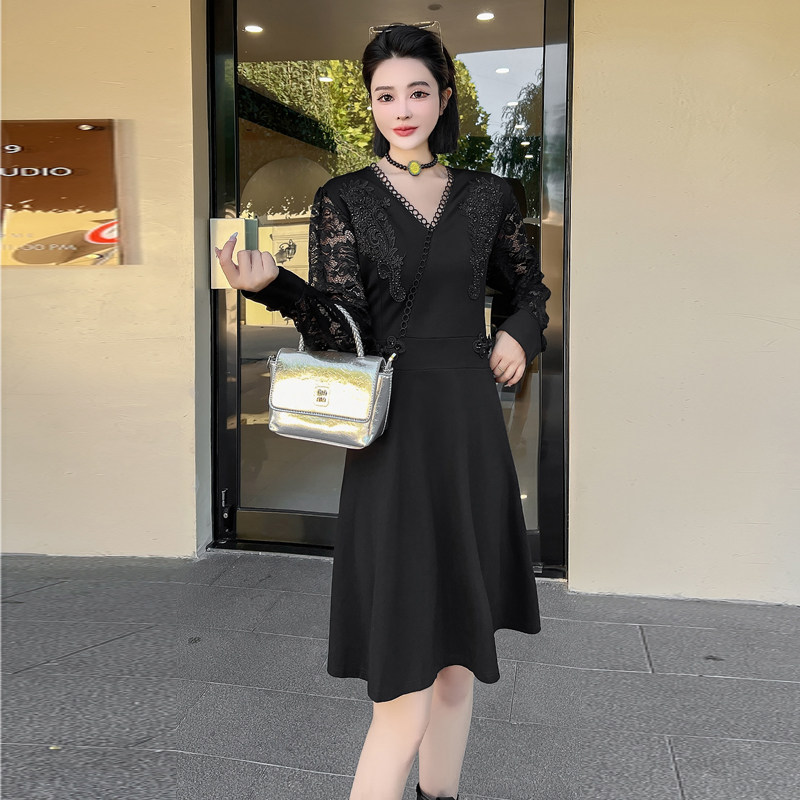 大码女装连衣裙2024年新款秋冬装微胖mm气质收腰遮肚显瘦打底裙子
