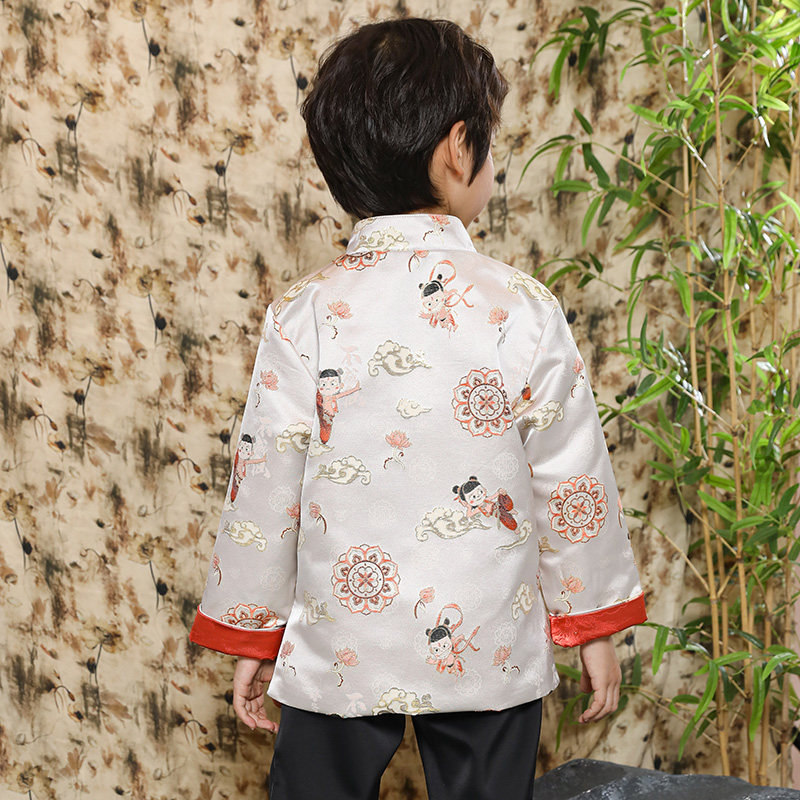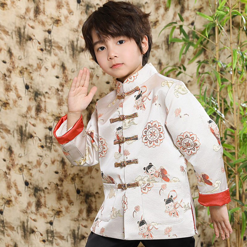 哪吒提花2026新年中式外套薄款儿童唐装男童拜年礼服男宝宝中国风