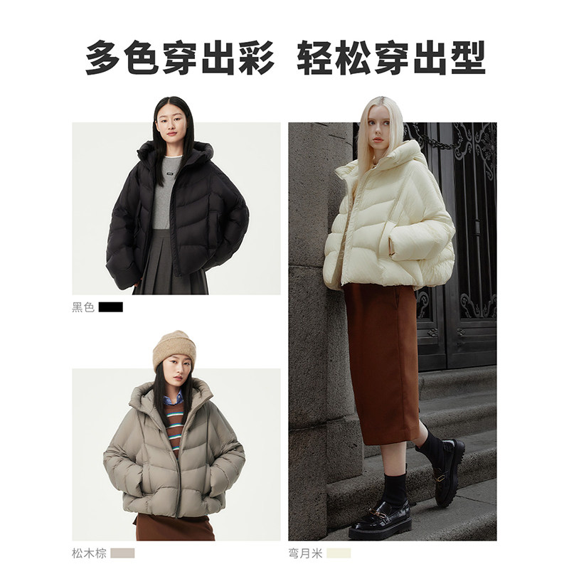 坦博尔冬季羽绒服女款 显瘦时髦廓形 小个子连帽短款保暖加厚外套