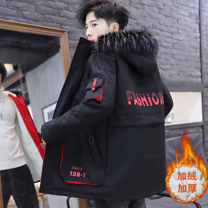 加绒加厚中长款夹克男孩13初中学生14衣服大童15岁冬装棉服外套
