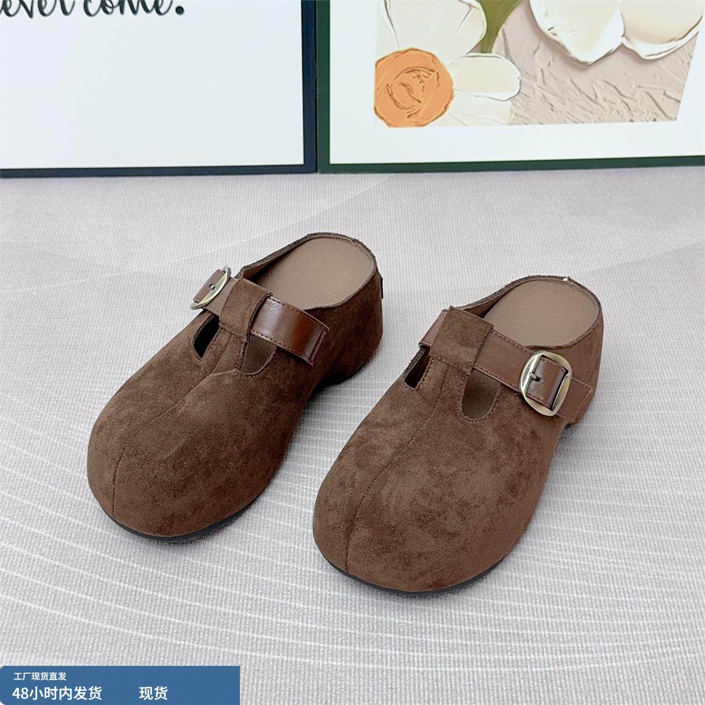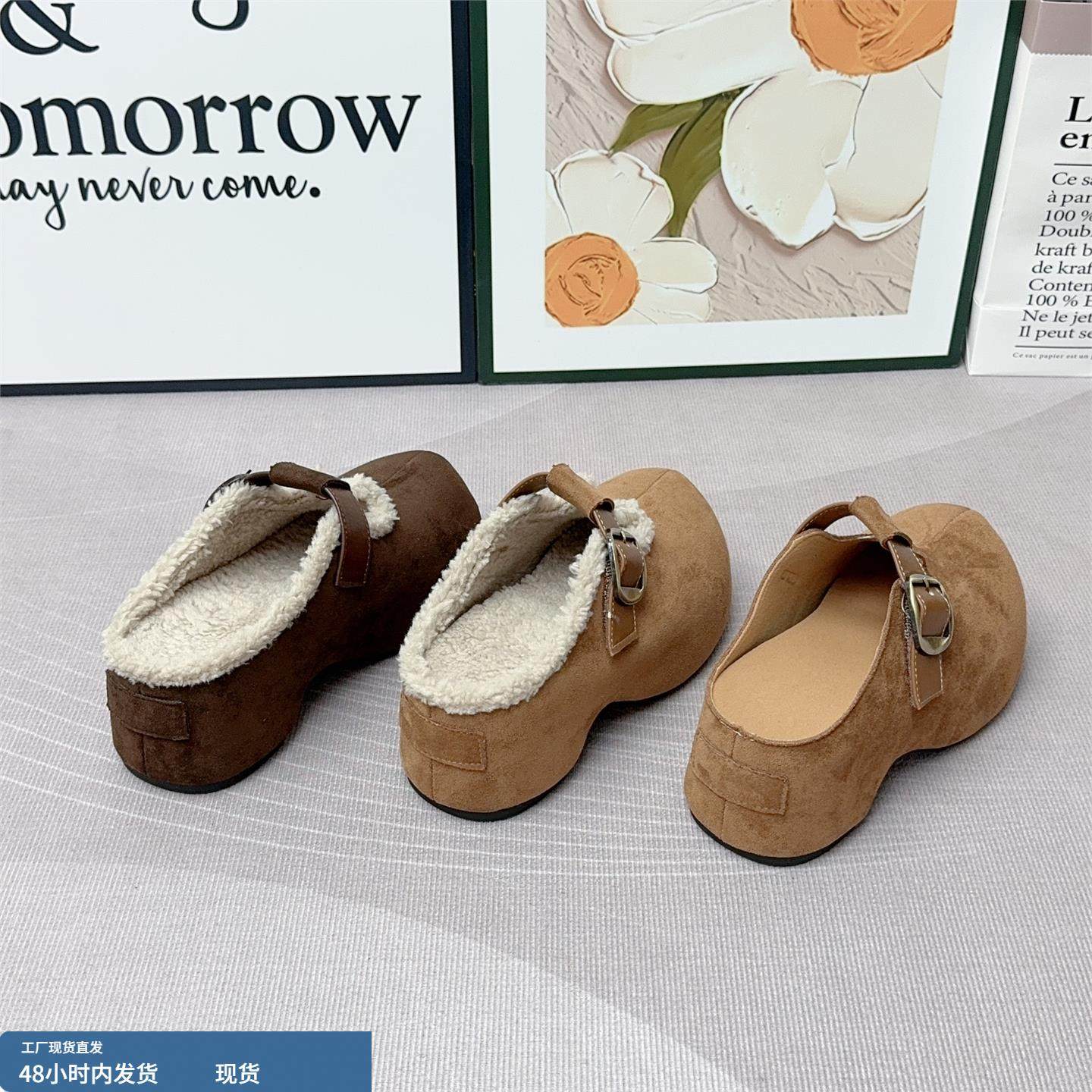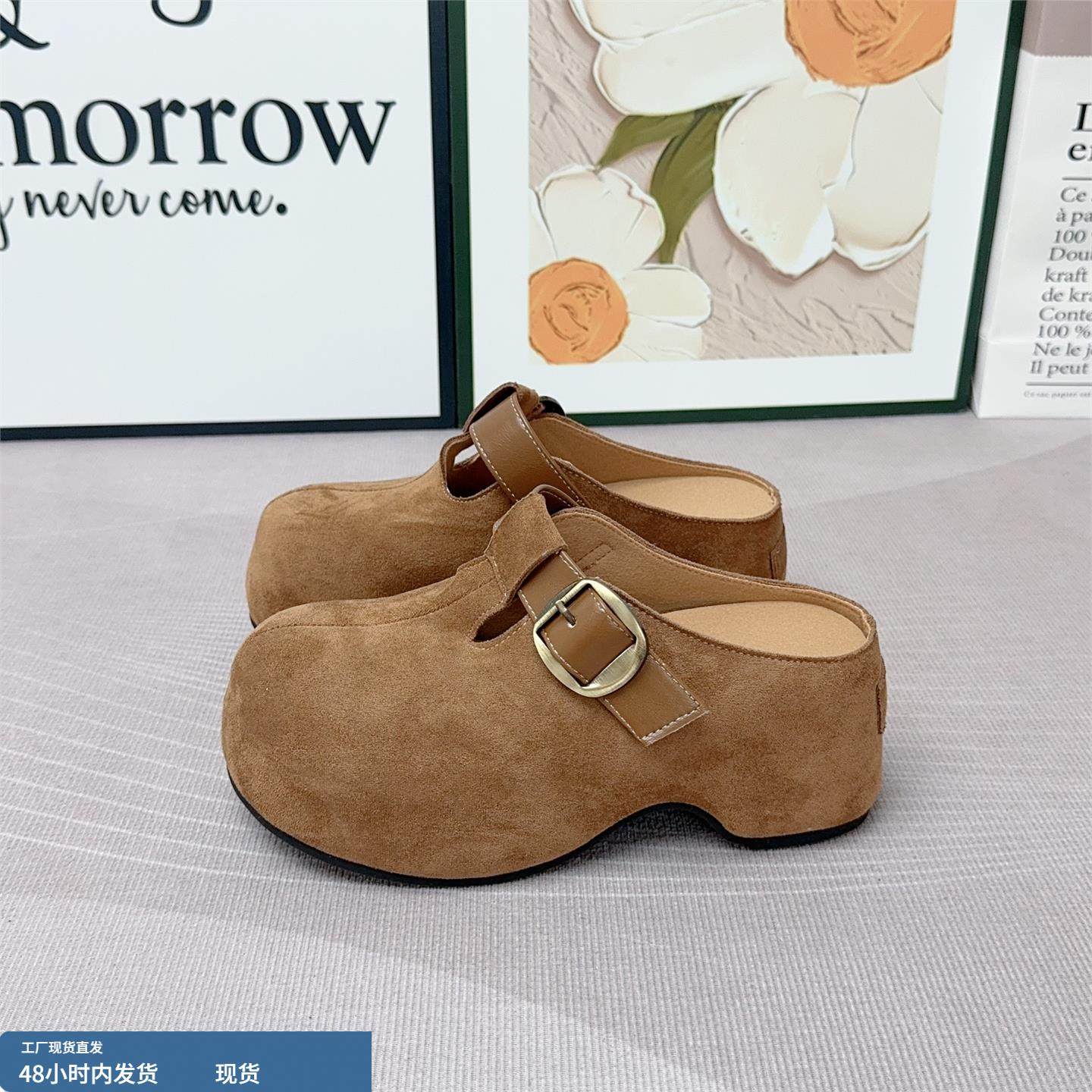 真皮~一脚蹬勃肯鞋女款秋冬加绒内增高8cm包头半拖鞋女厚底博肯鞋