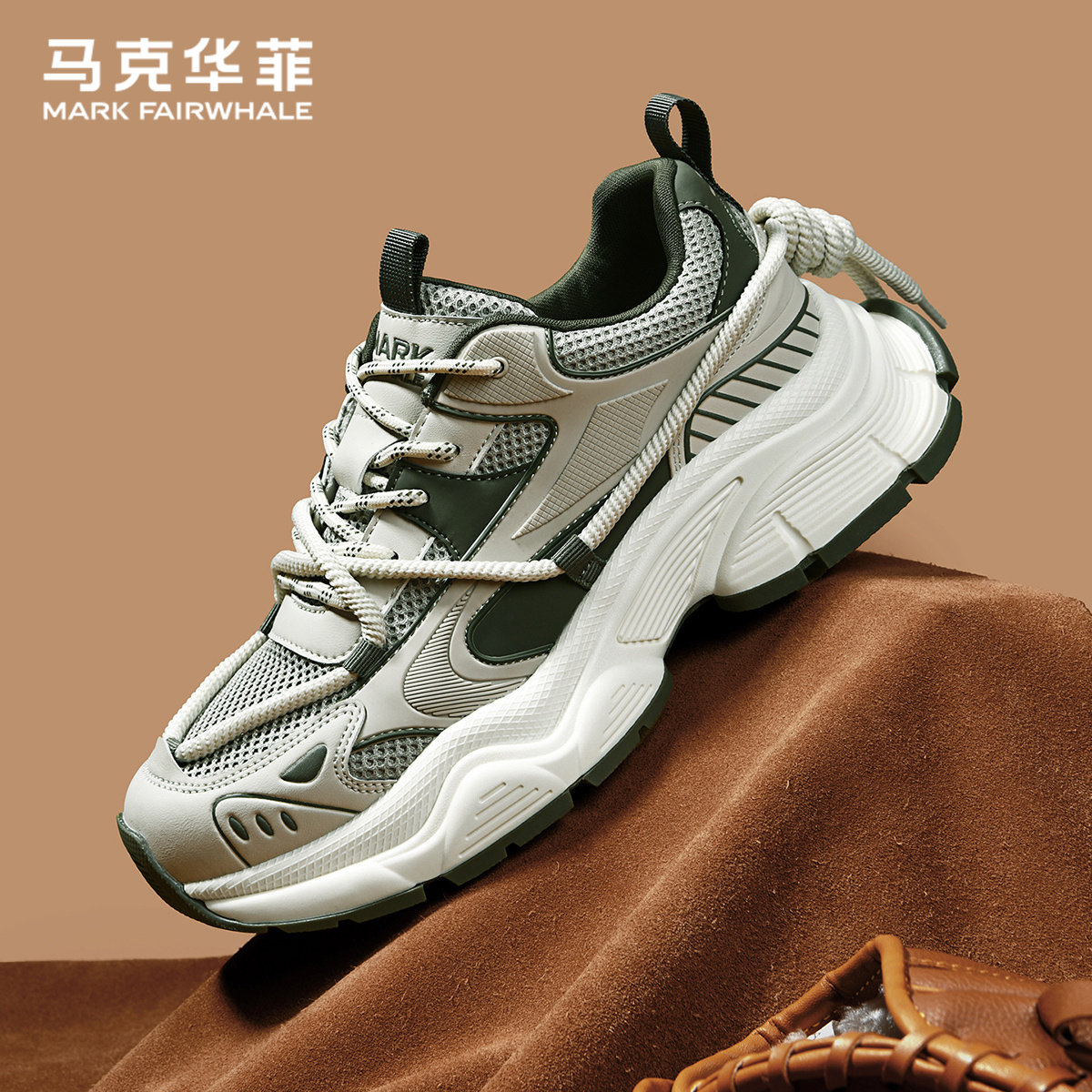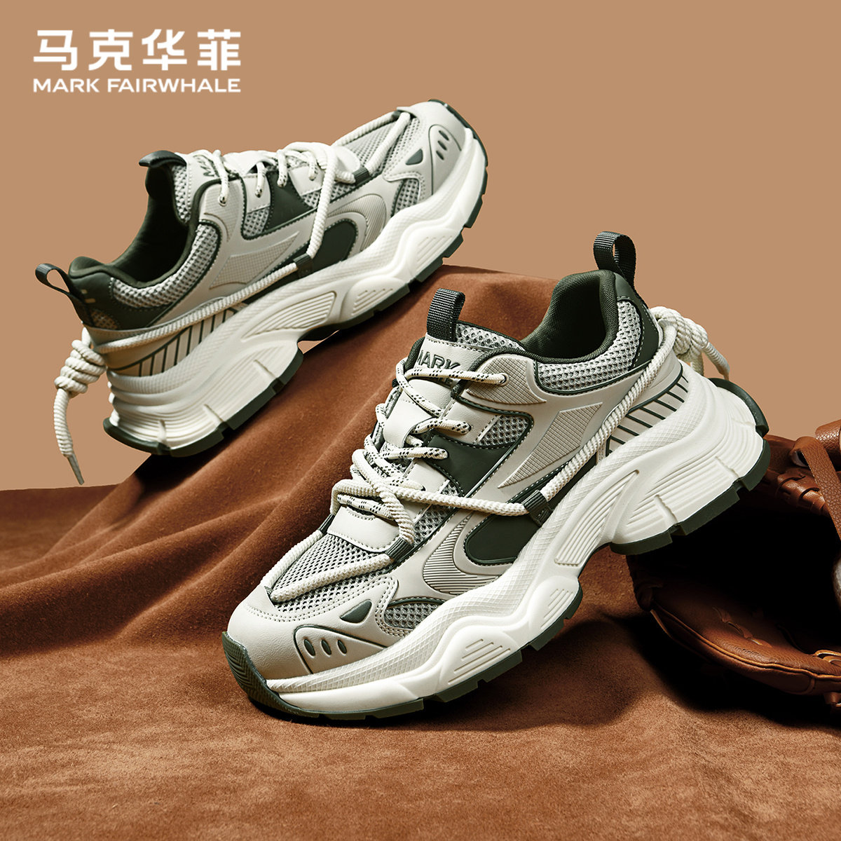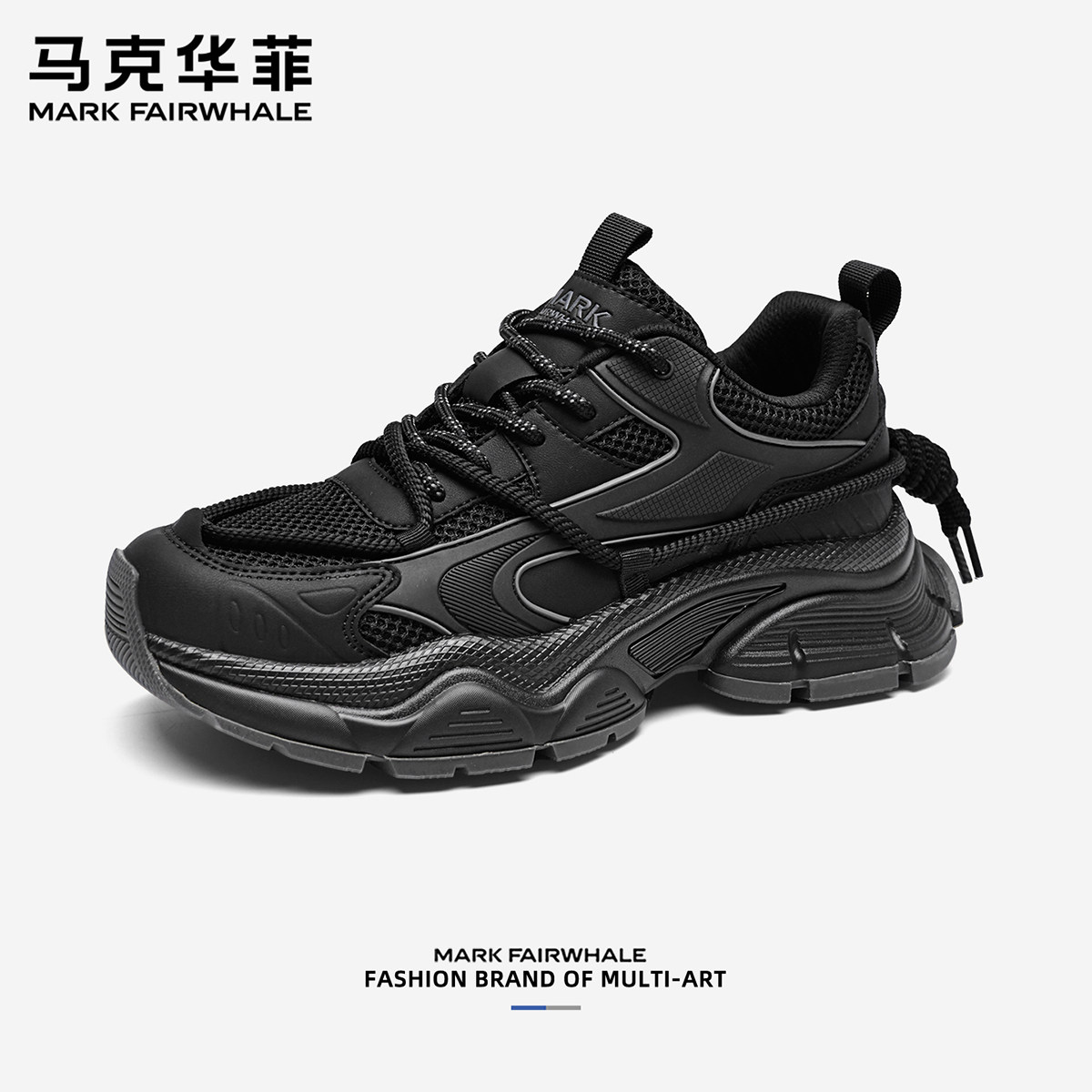 马克华菲男鞋子黑色厚底老爹鞋冬季2026新款高级感增高休闲运动鞋