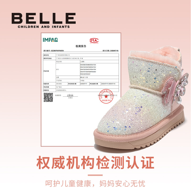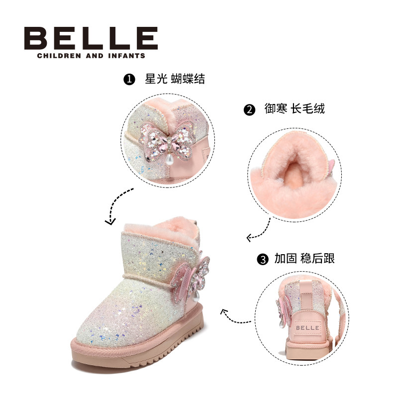 百丽童鞋女童雪地靴2025冬季新款保暖加绒大棉鞋儿童棉靴公主靴子