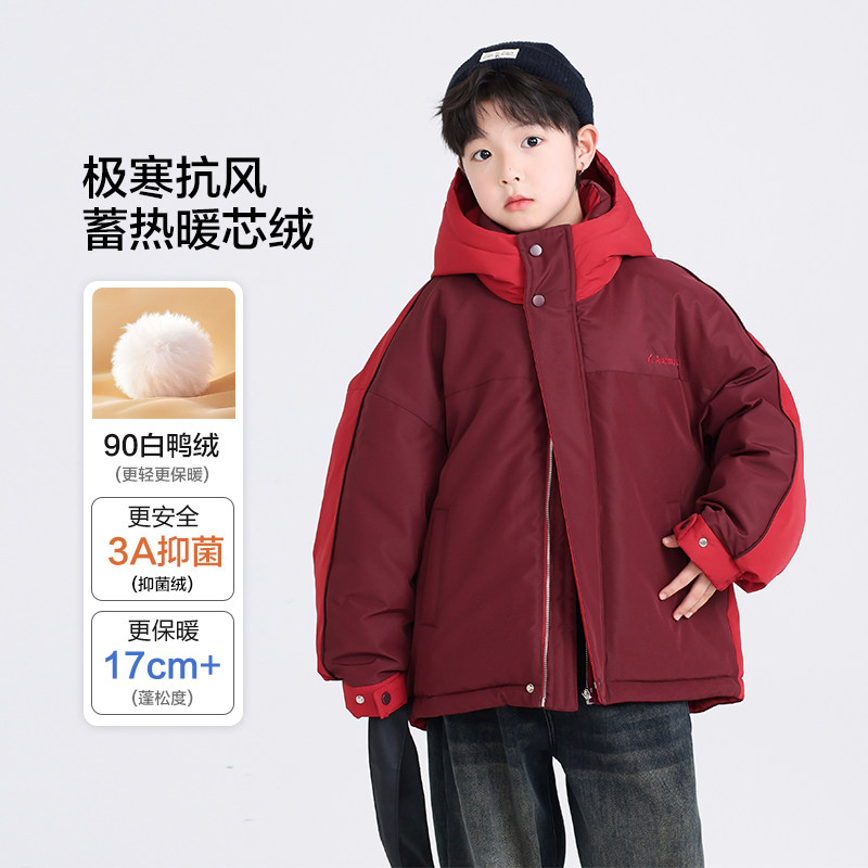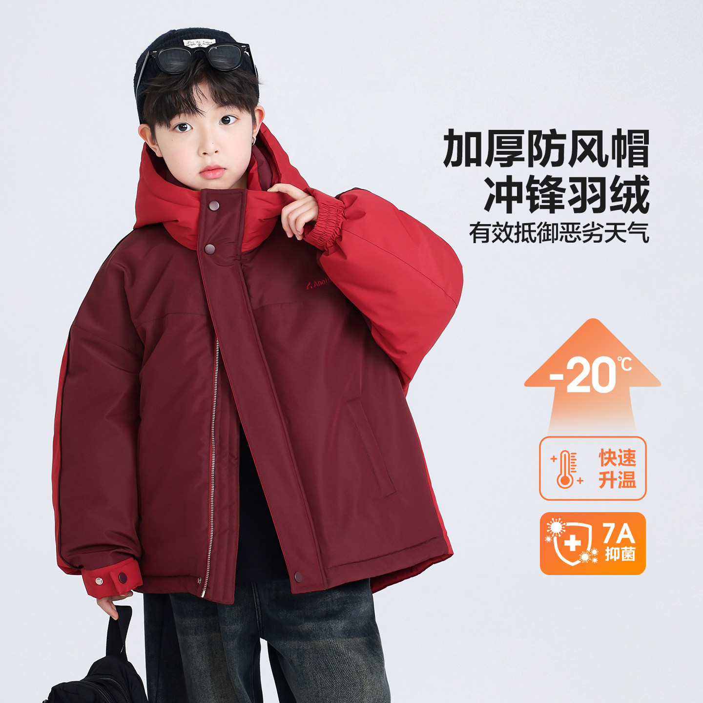 男童冬季新年红色冲锋衣羽绒服2026新款儿童男孩防风防水加厚外套