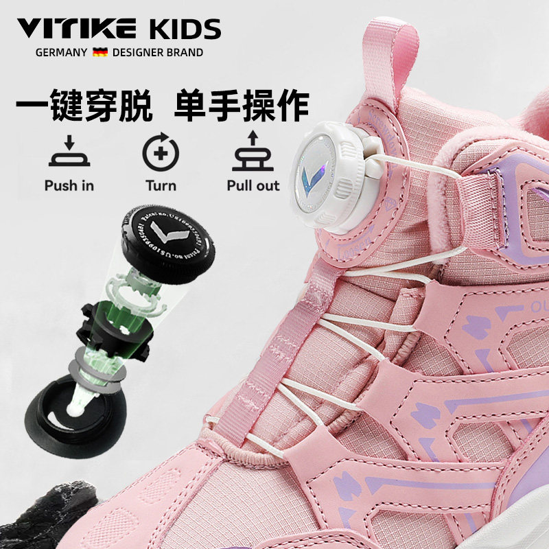 女童鞋子冬款2025新款加绒加厚大棉男童运动鞋防滑钢爪儿童雪地靴