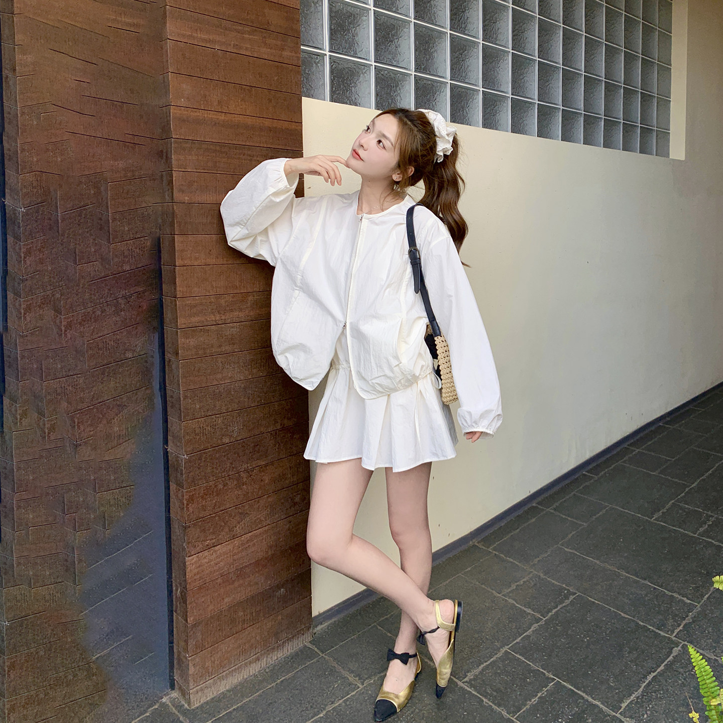 米白色吊带连衣裙套装女春季2026新款圆领外套韩系穿搭爆款两件套
