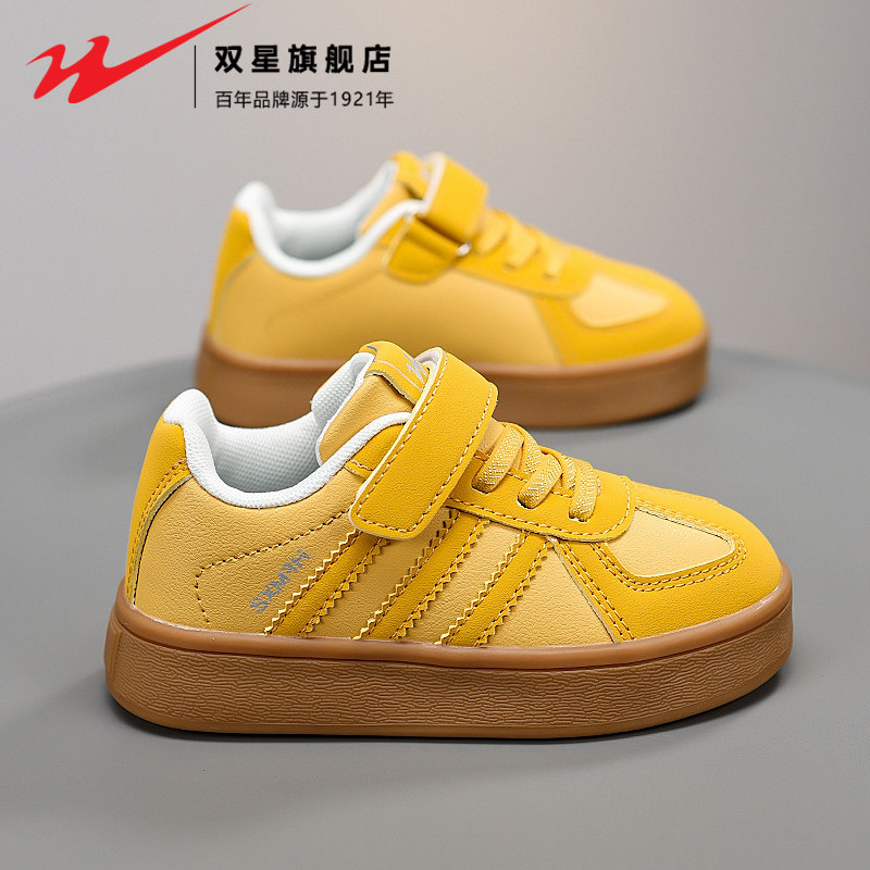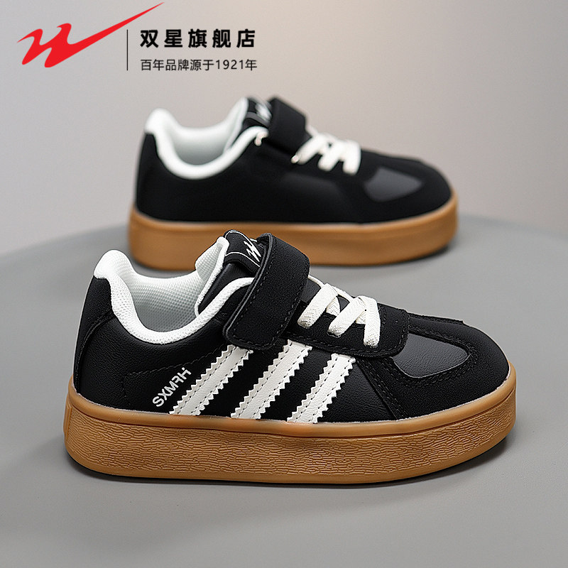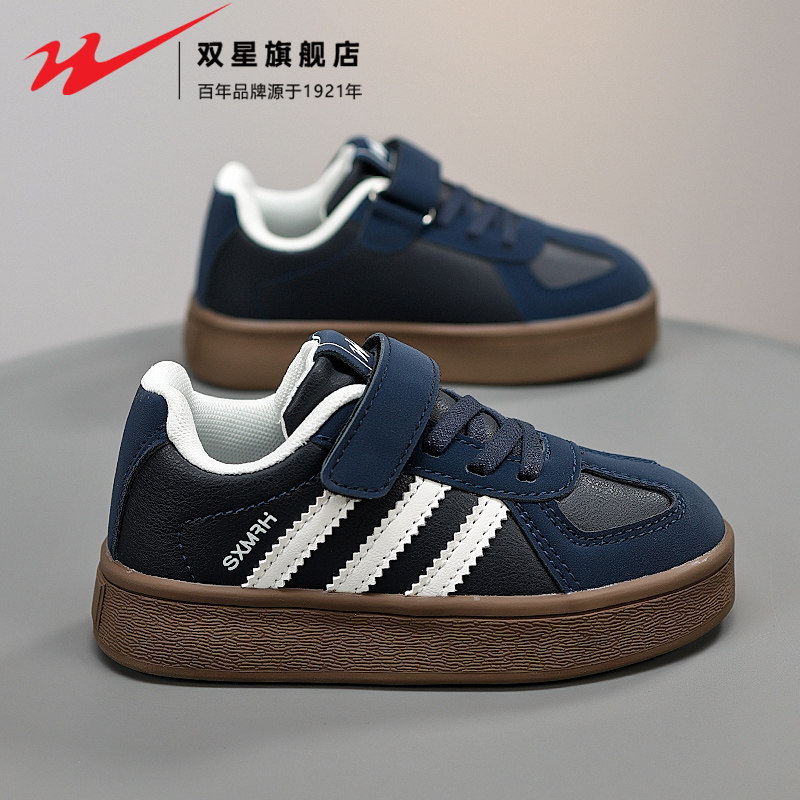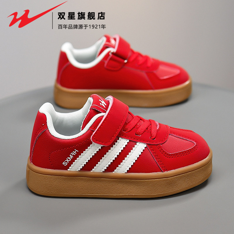 双星女童鞋子2026新款春秋款男童皮面防水阿甘德训板鞋儿童运动鞋