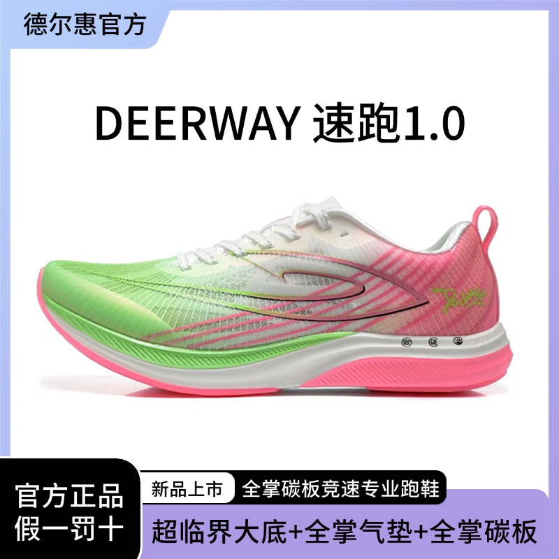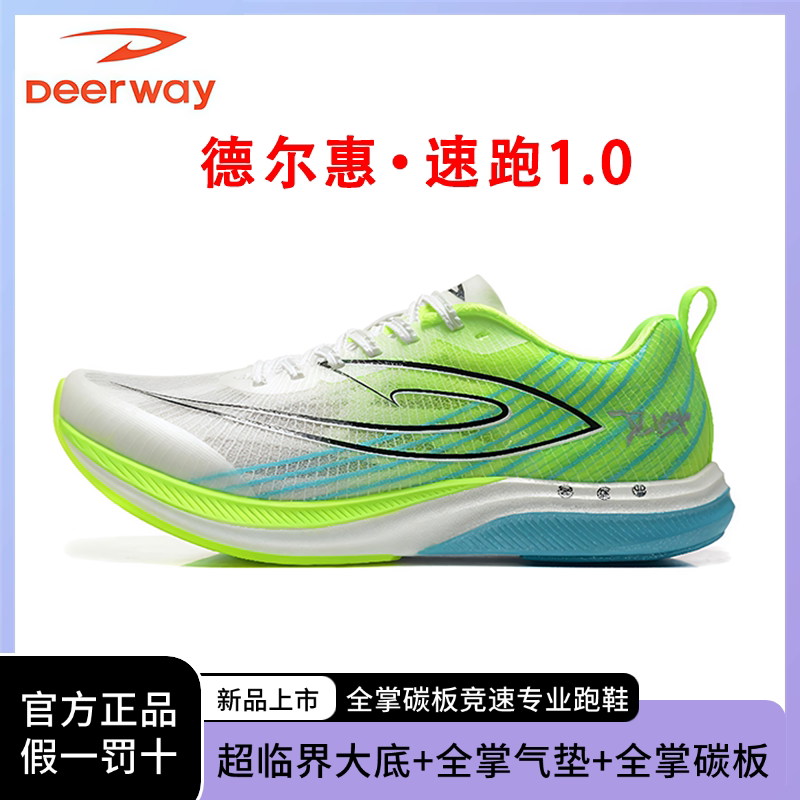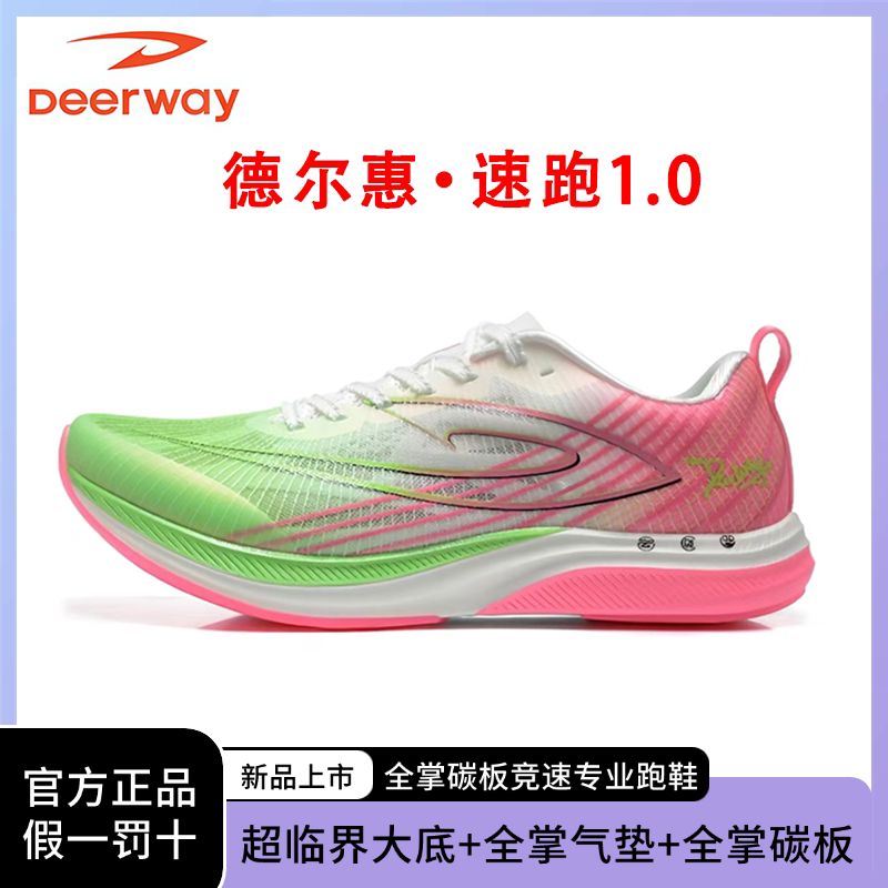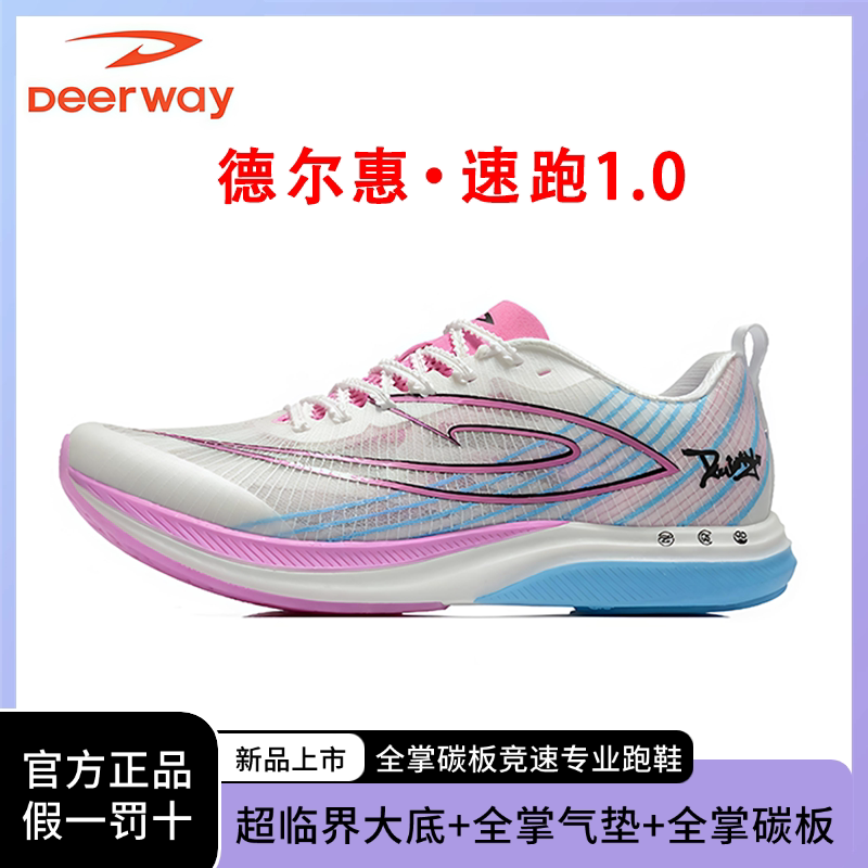 德尔惠速跑1.0全掌真碳板气垫跑鞋竞速初中青少年学生跑步鞋男女