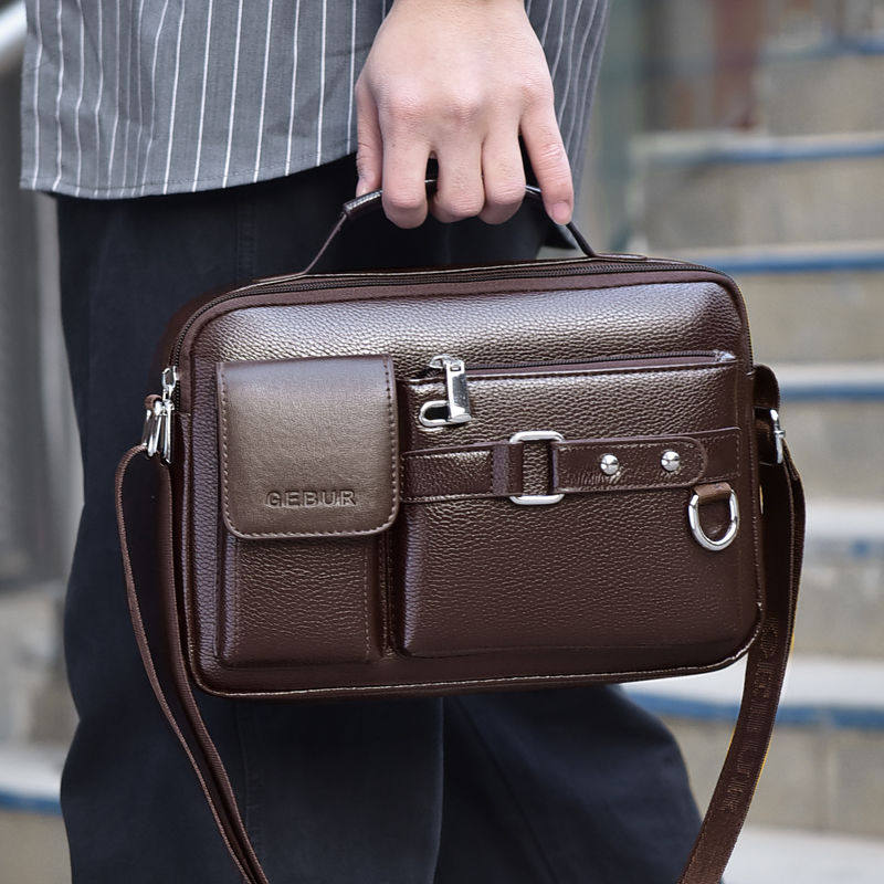 单肩包斜挎包男款真皮男士商务休闲横款牛皮公文包男款手提包背包