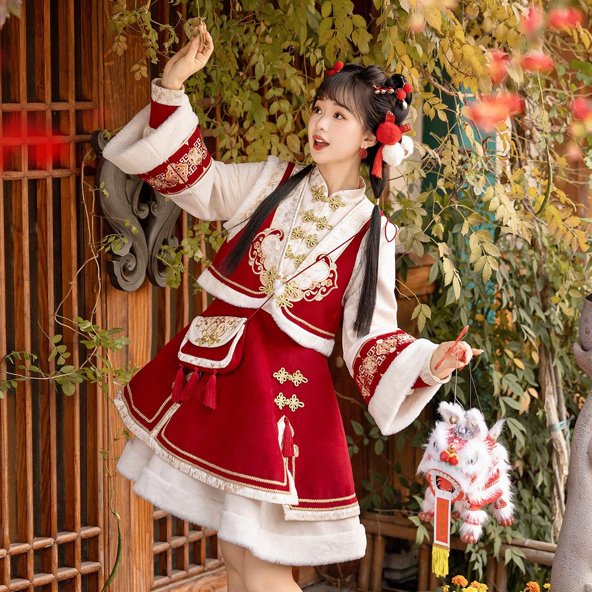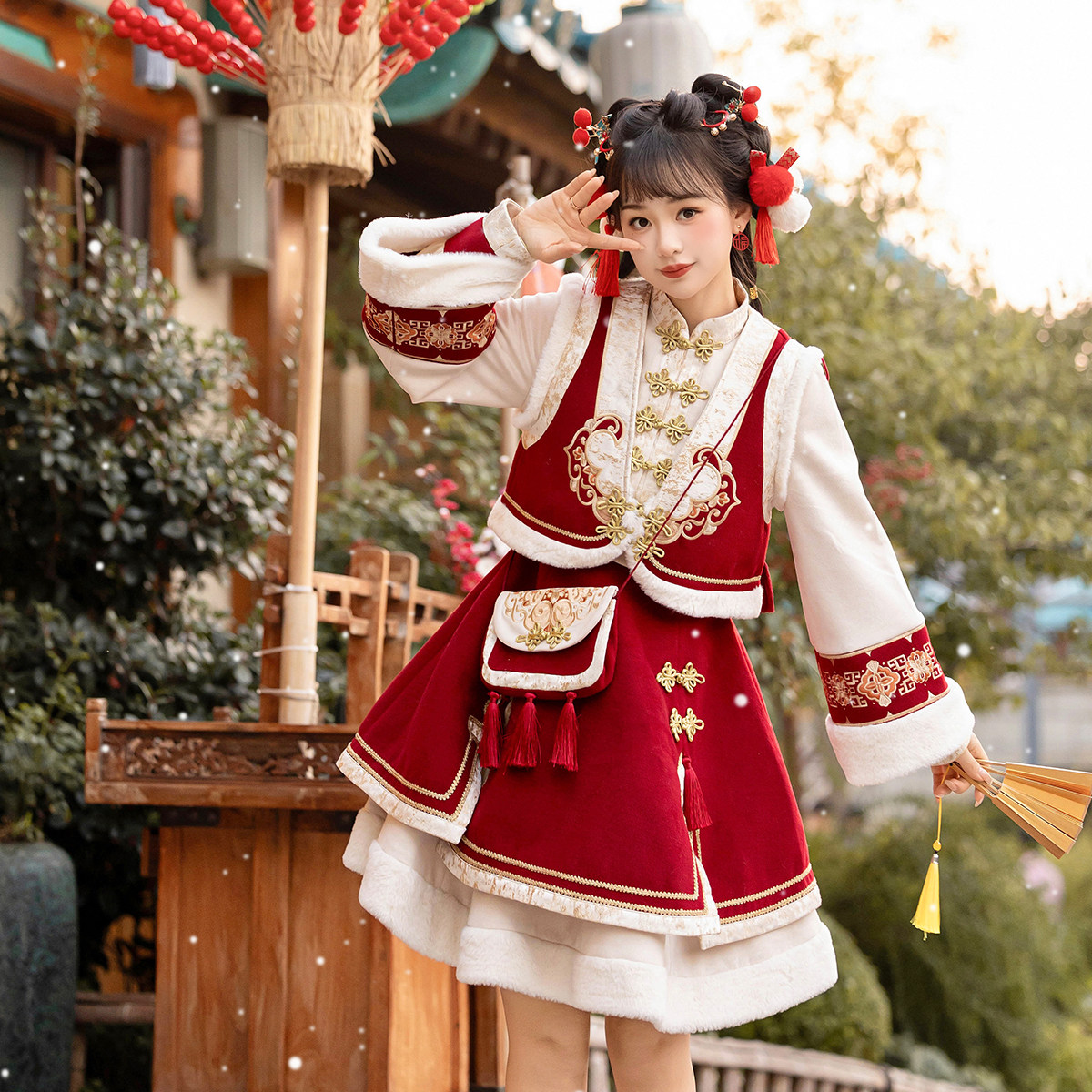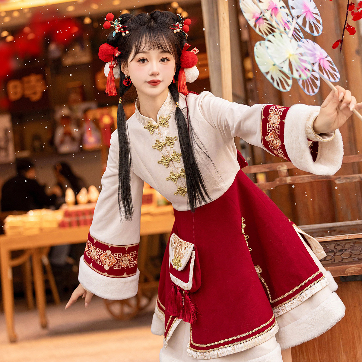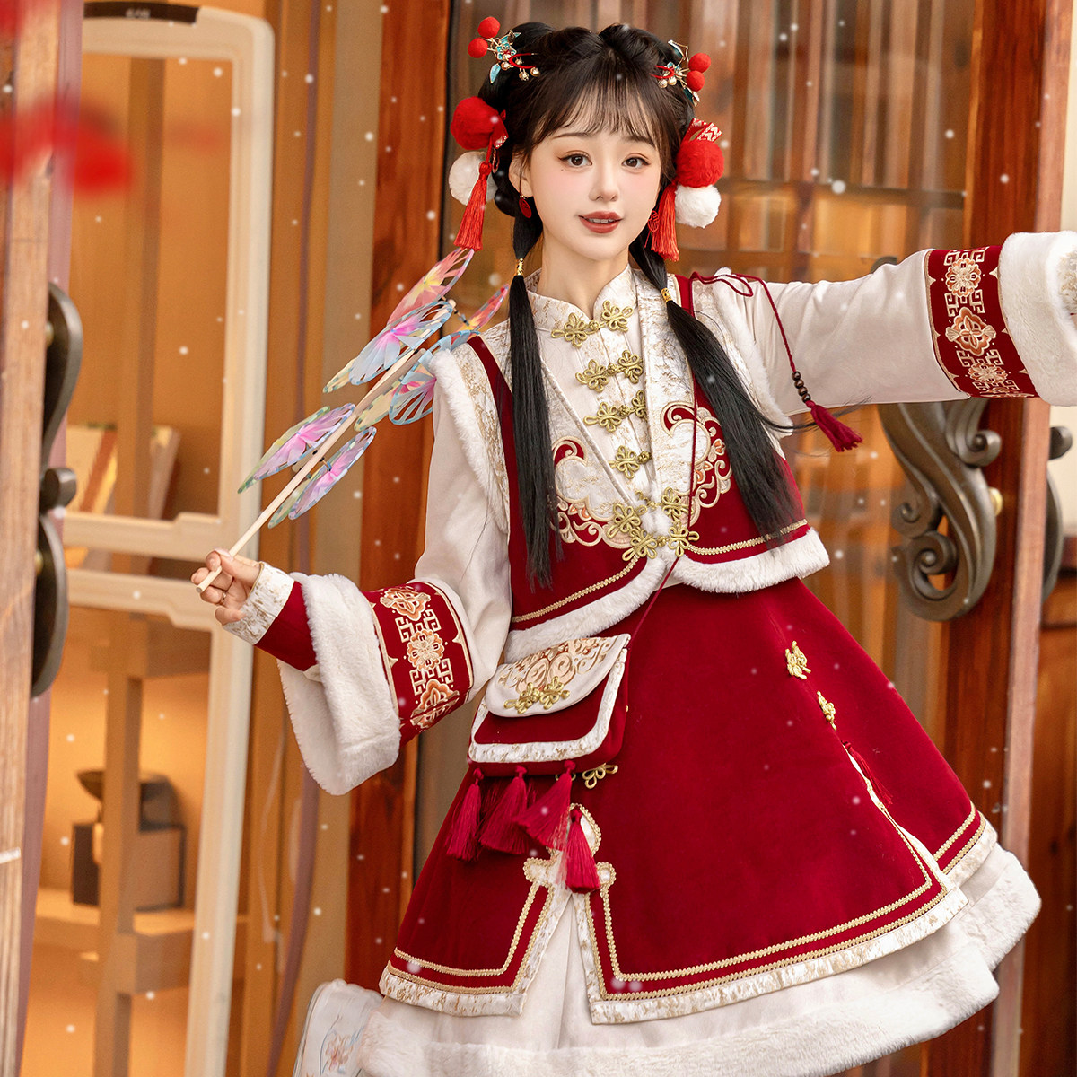 连衣裙女秋冬国风汉元素小个子新中式拜年服套装2026马年新年战袍