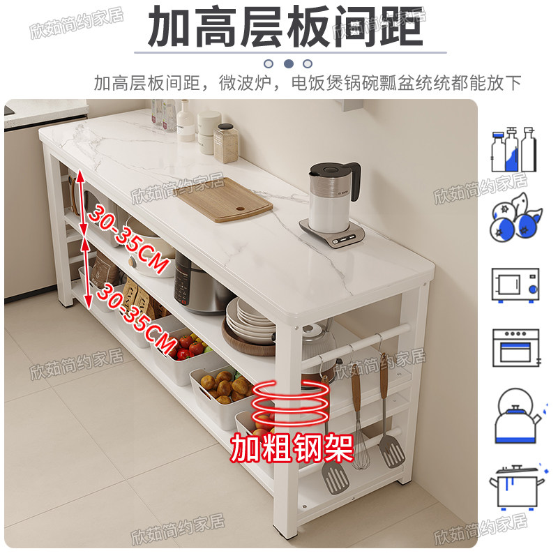 岩板厨房置物架落地多层多功能切菜桌子操作台锅碗收纳储物窄边柜