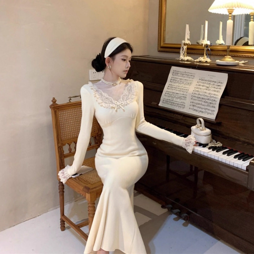 高级感法式白色针织连衣裙子女秋冬季2025新款配大衣内搭打底长裙