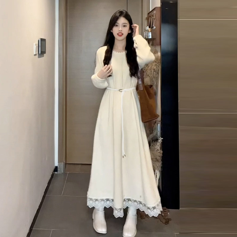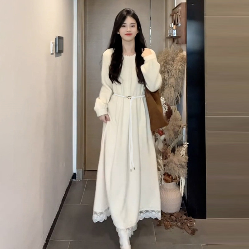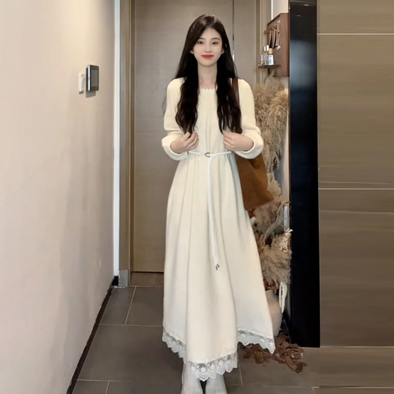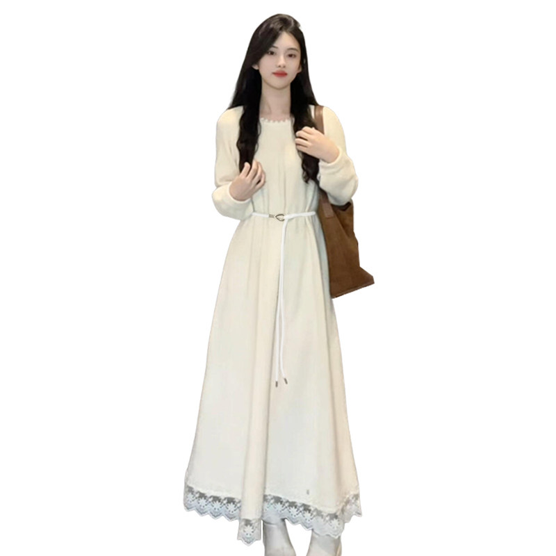 高级感白色法式连衣裙子女2025新款秋冬配大衣内搭打底巨好看长裙