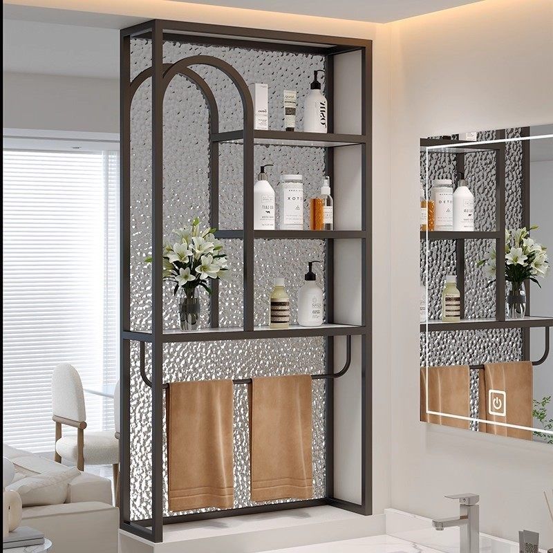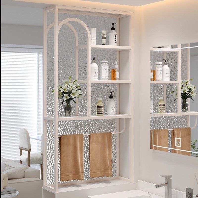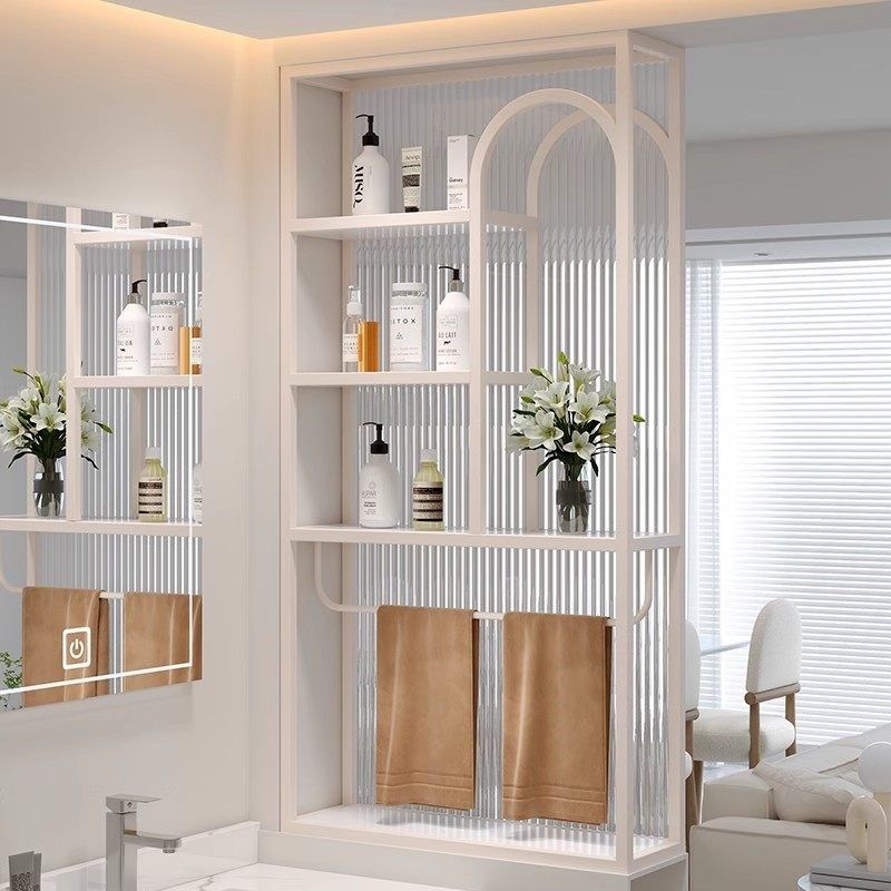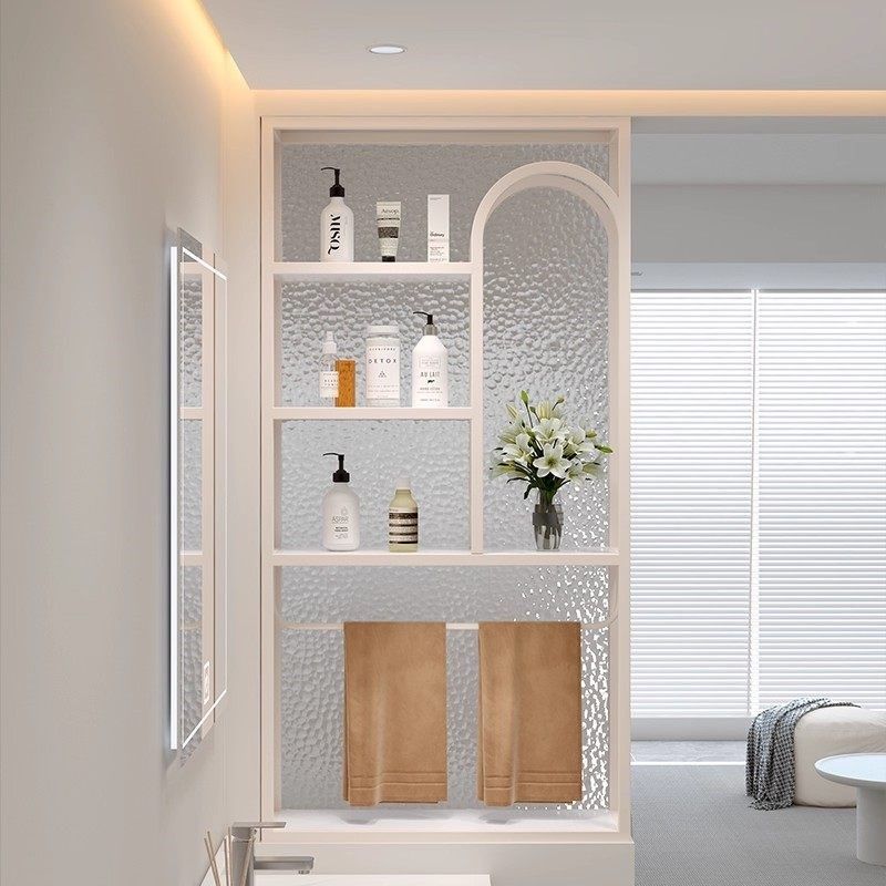 奶油风卫生间半墙隔断柜屏风浴室干湿分离客厅洗漱台置物架子轻奢