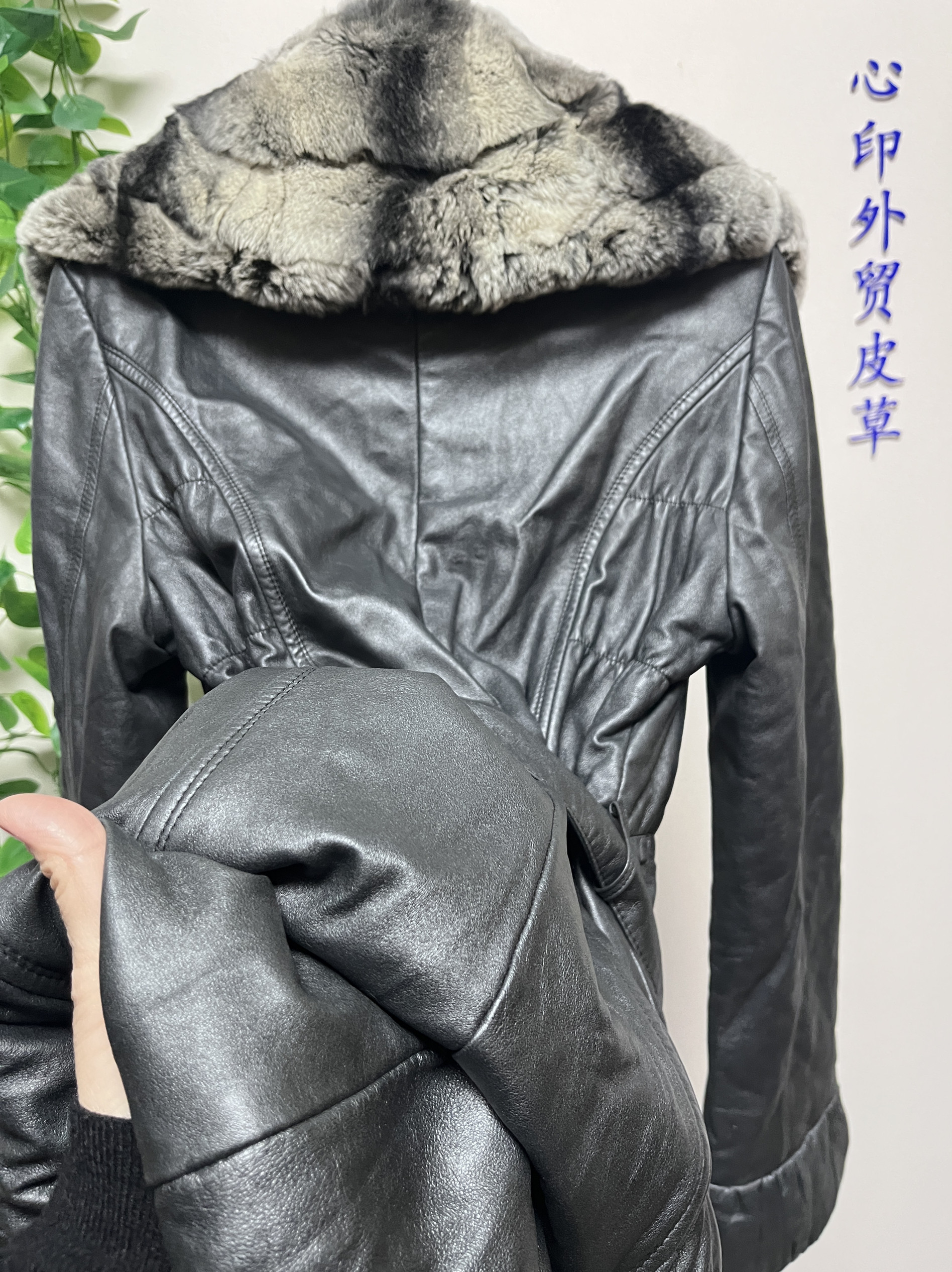 断码尾货女士绵羊皮真皮皮衣加棉超大獭兔毛领保暖修身显瘦时尚款