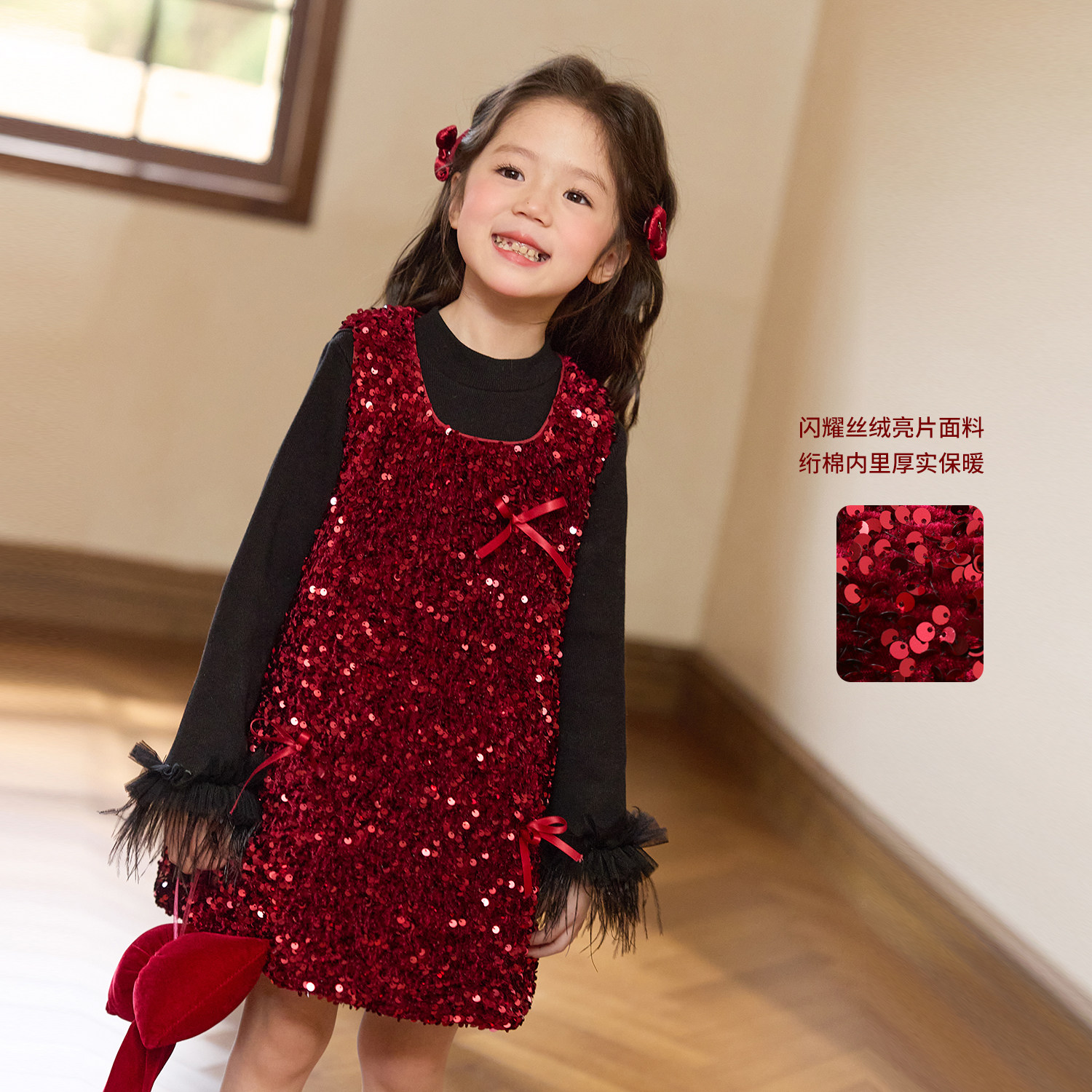 小O宝童装 宝宝富家千金礼服女公主裙2026新款女童红色过年连衣裙