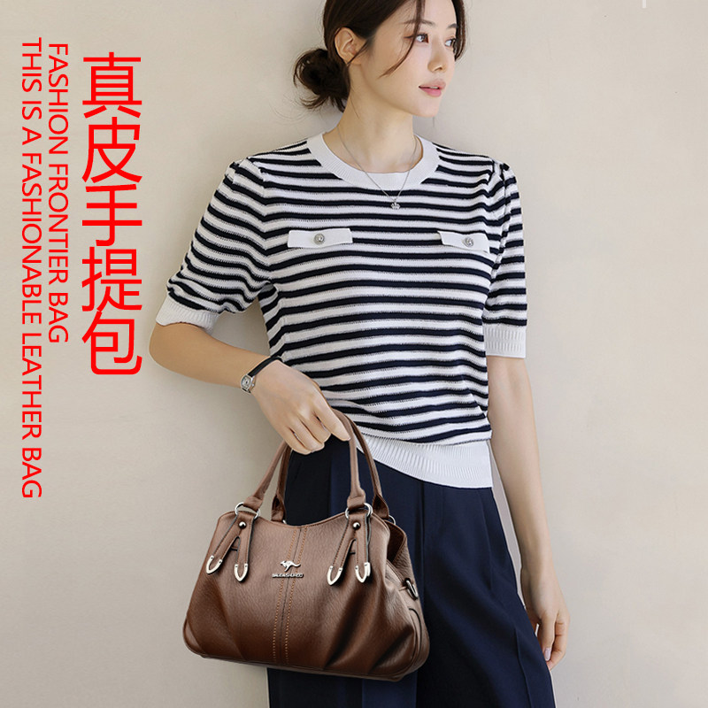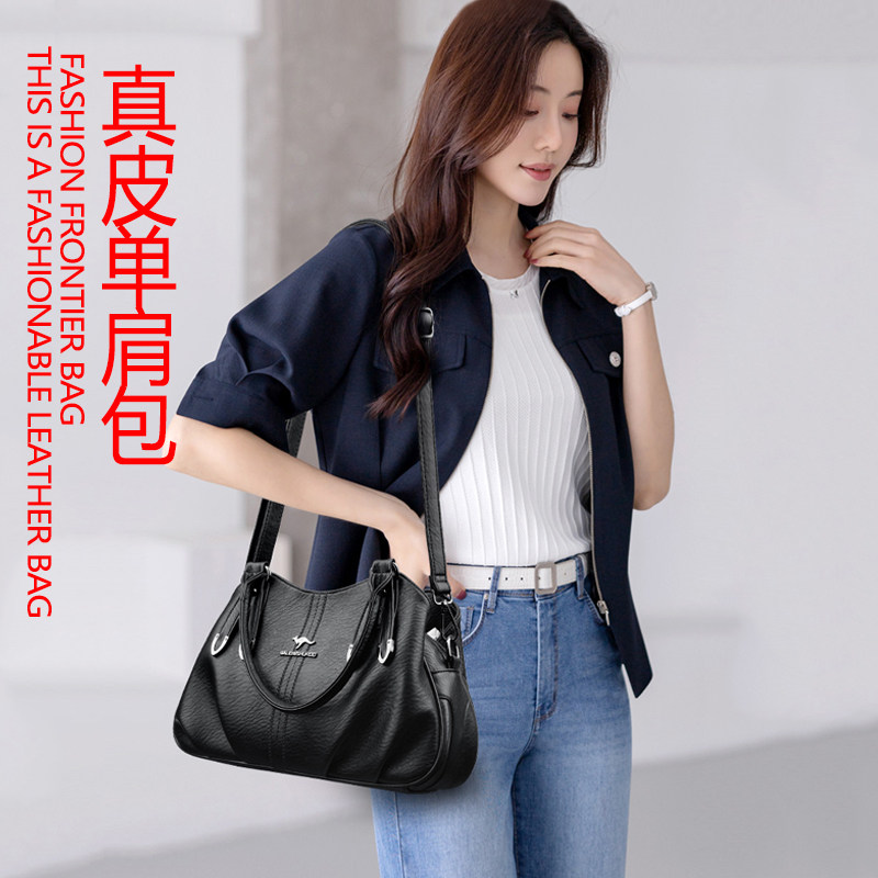 袋鼠真皮女包质感手提包女款包包2025新款单肩斜挎包大容量软牛皮