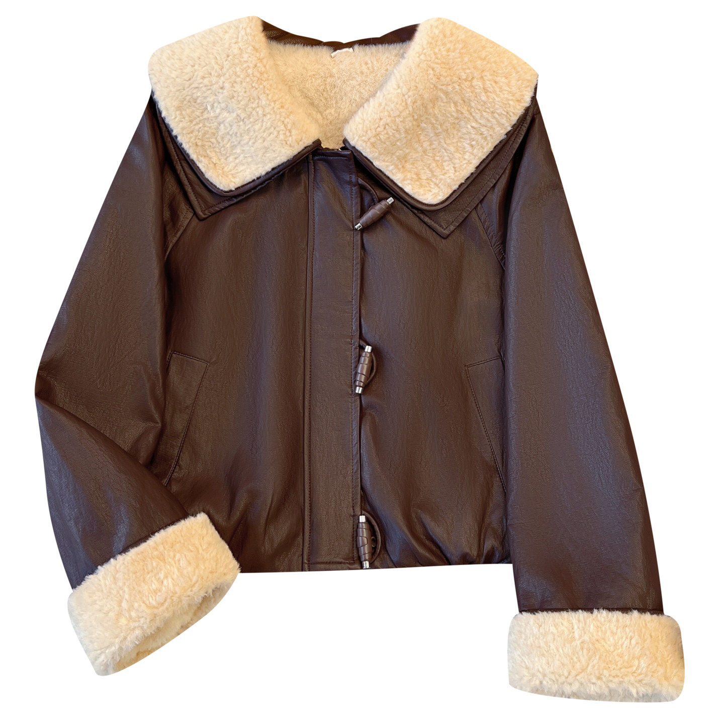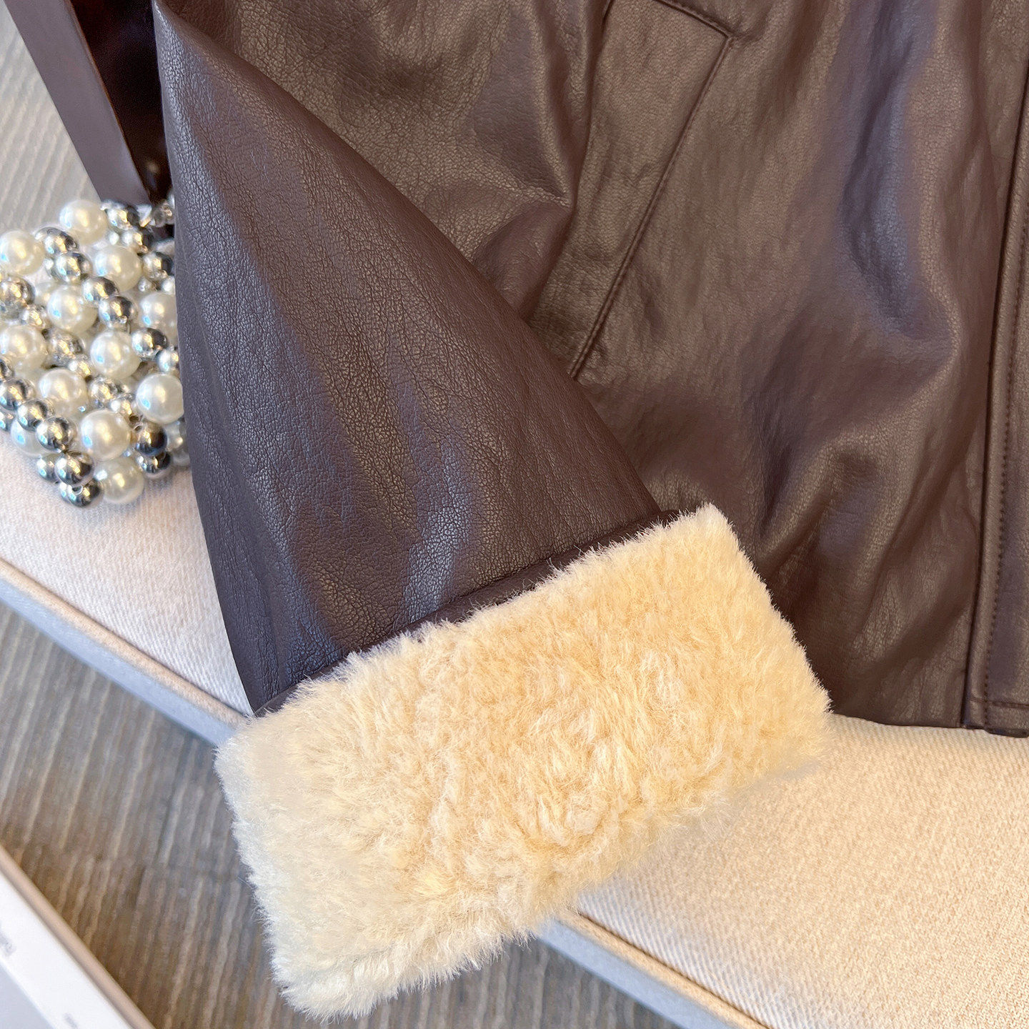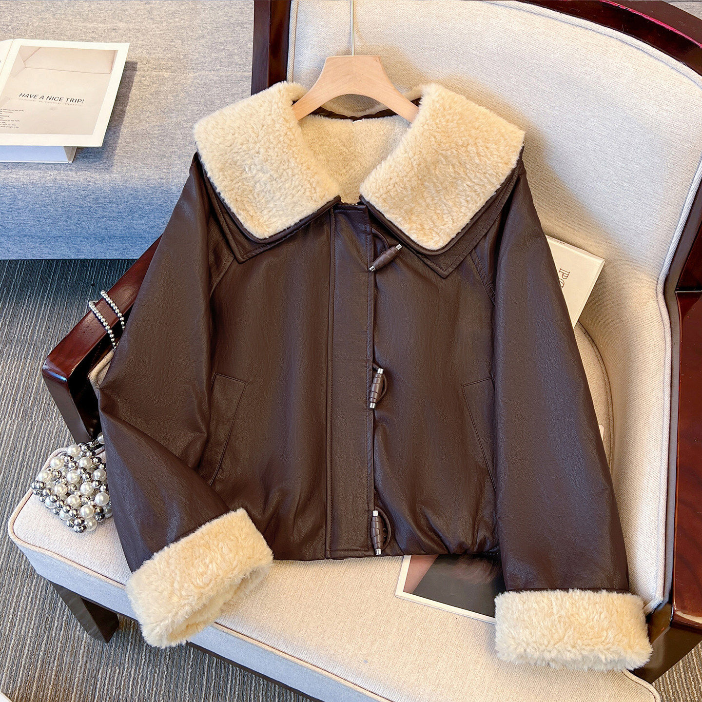 小香风羊羔毛娃娃大翻领pu皮衣外套女加绒加厚2025初冬装新款夹克