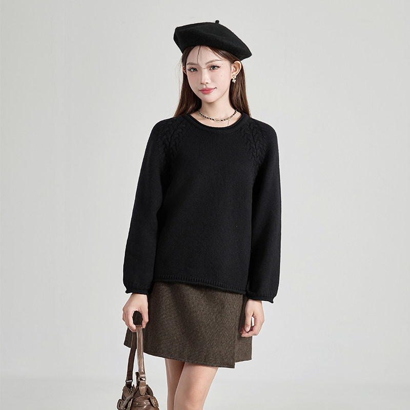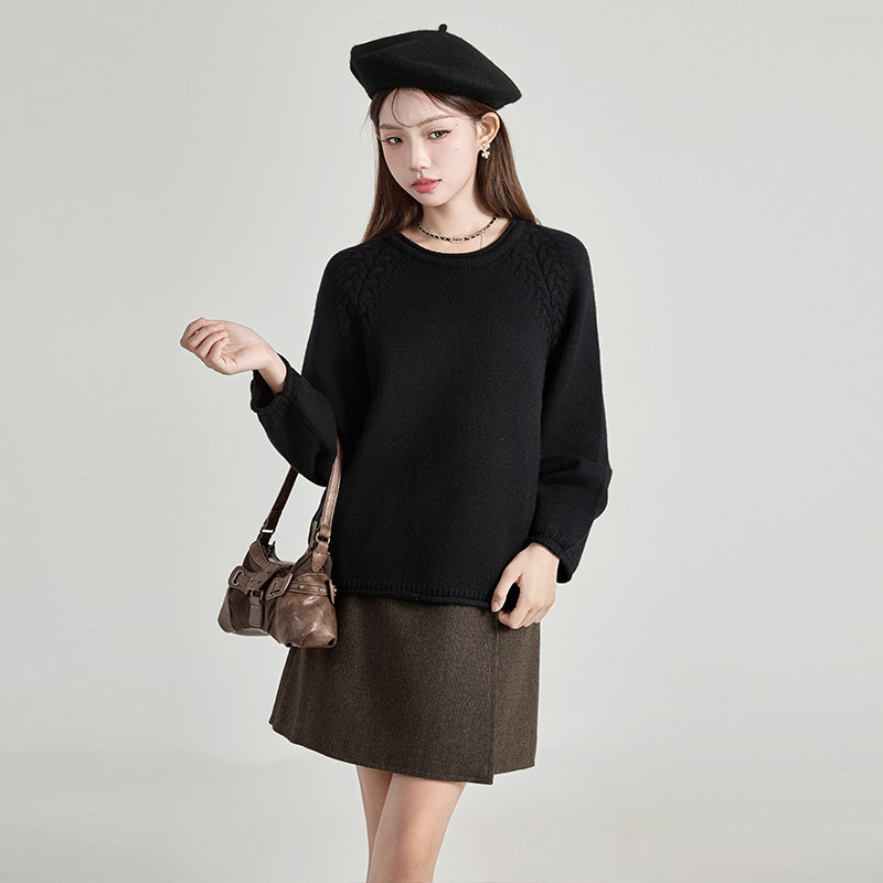 绮娑大码针织衫女装秋冬新款上衣显瘦胖MM长袖套头黑色毛衣上衣女