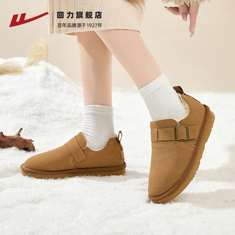 回力加绒勃肯鞋女2026冬季新款加厚保暖厚底雪地靴百搭女士棉鞋