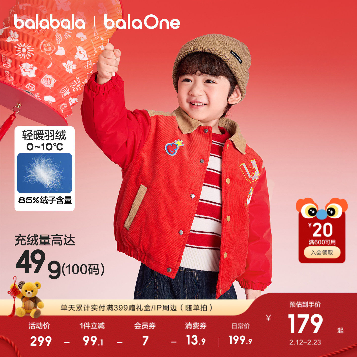 巴拉巴拉童装儿童羽绒服男童女童冬装2026新款宝宝外套拜年服红色