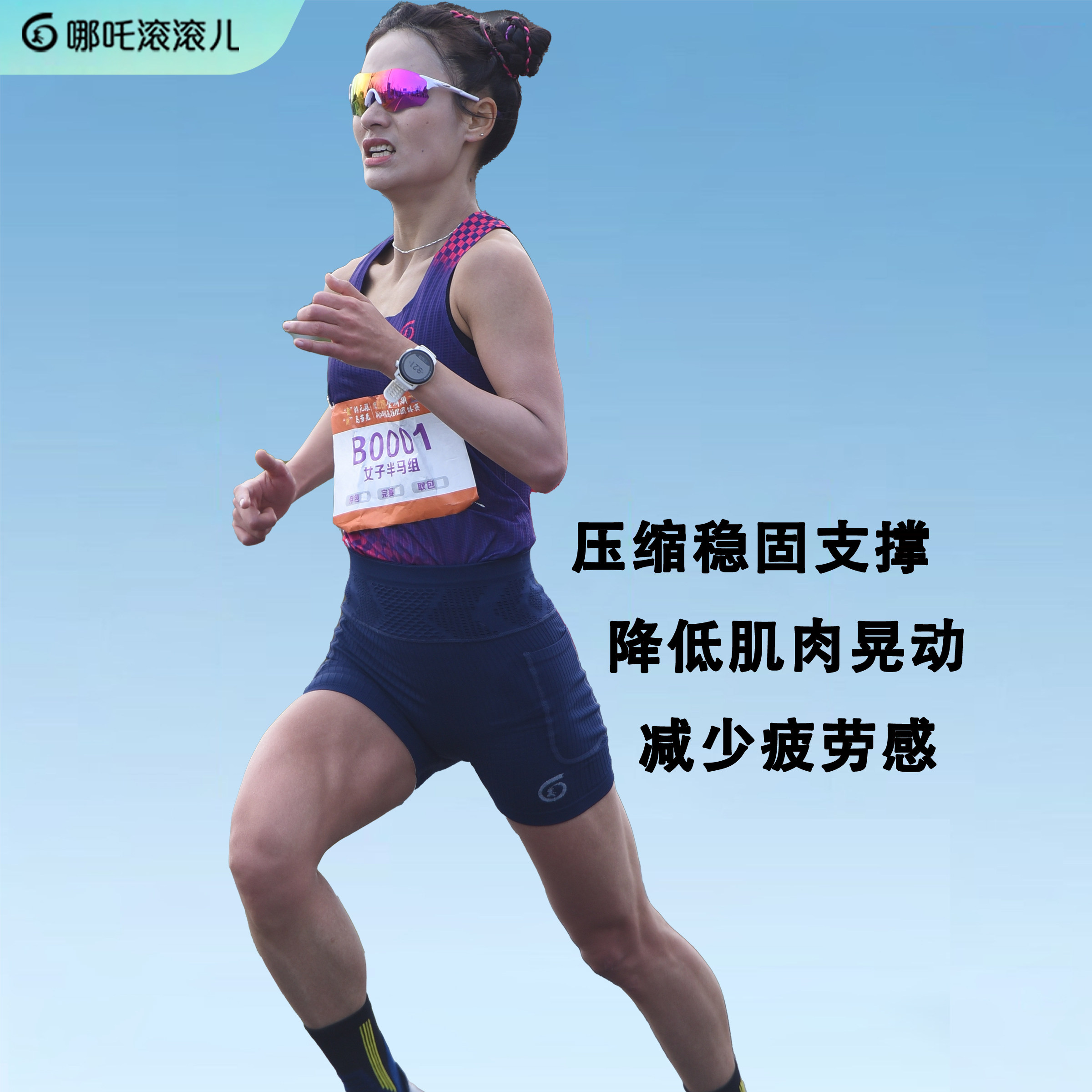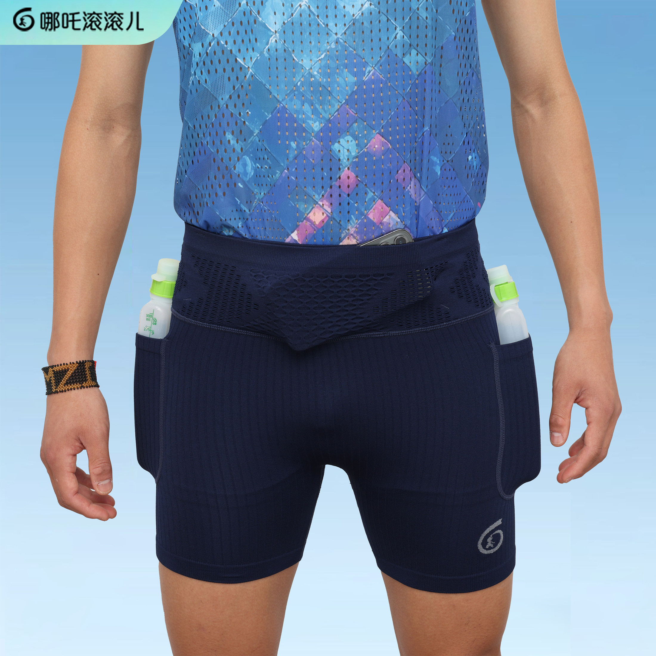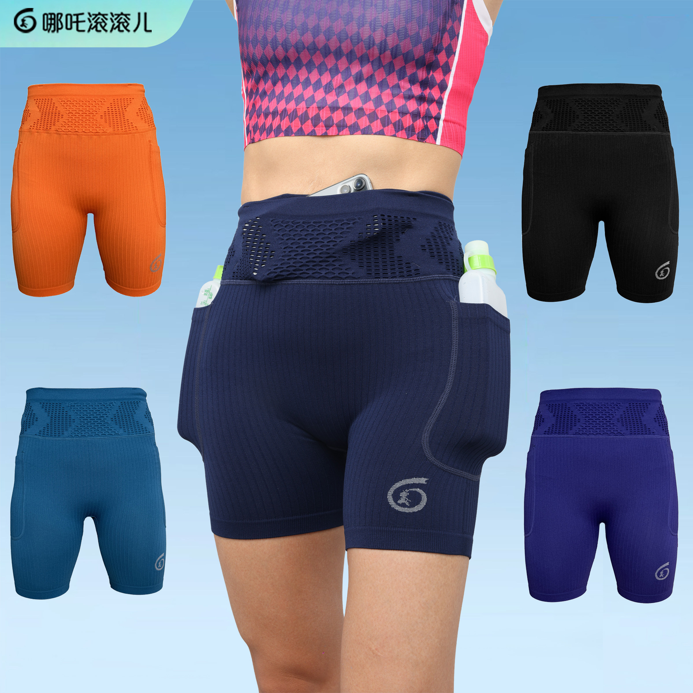 哪吒滚滚儿跑步压缩裤马拉松运动健身裤新款袋鼠裤腰兜腿兜四分裤