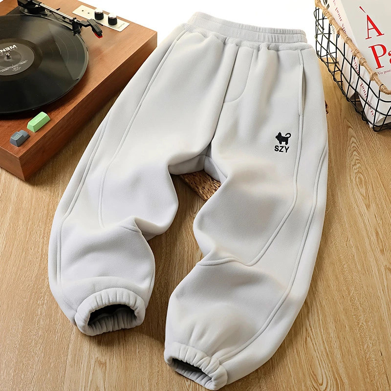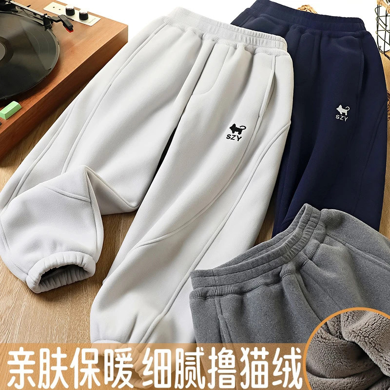 男童冬季撸猫绒裤子中大童儿童一体绒加绒加厚保暖休闲卫裤运动裤