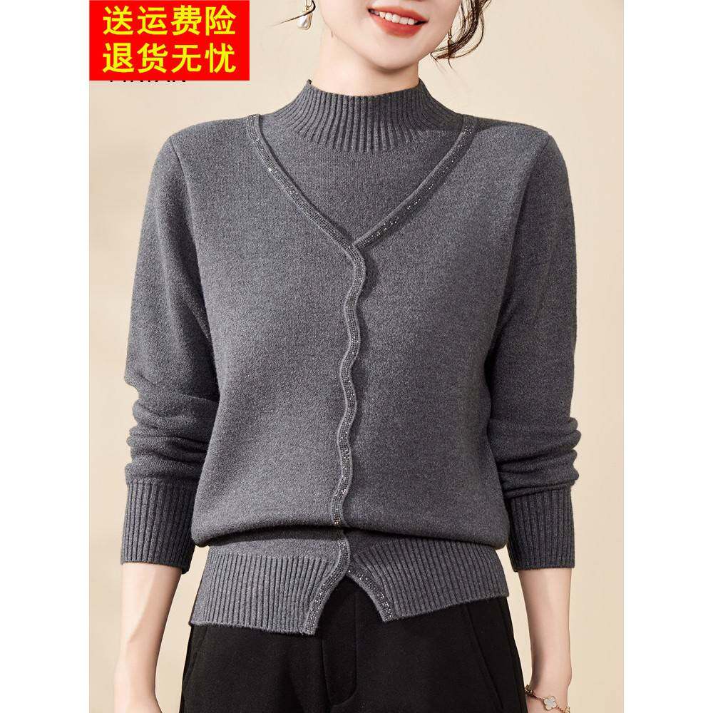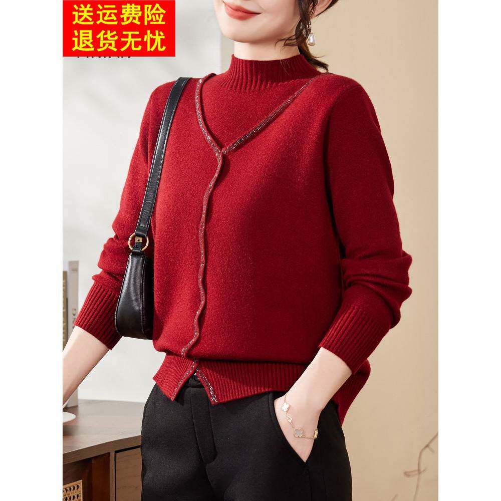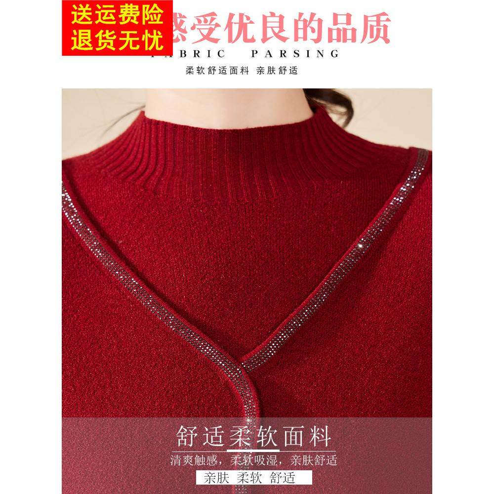 妈妈红色毛衣女秋冬季加绒加厚2025新款中老年冬装洋气内搭打底衫