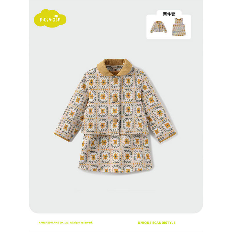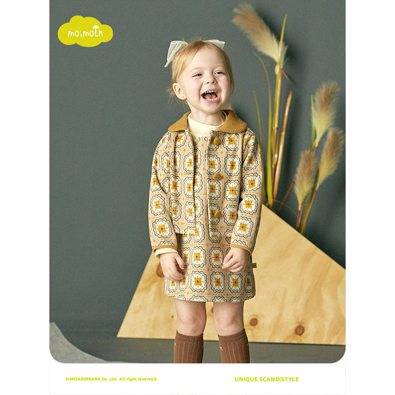moimoln小云朵童装冬季女童连衣裙套装女宝宝裙子外套