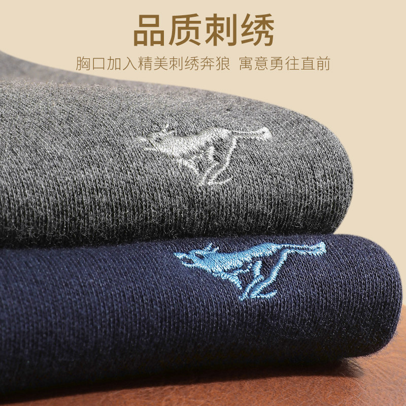 七匹狼高领秋衣纯棉男款防风保暖内衣套装中老年打底棉毛衫上衣男