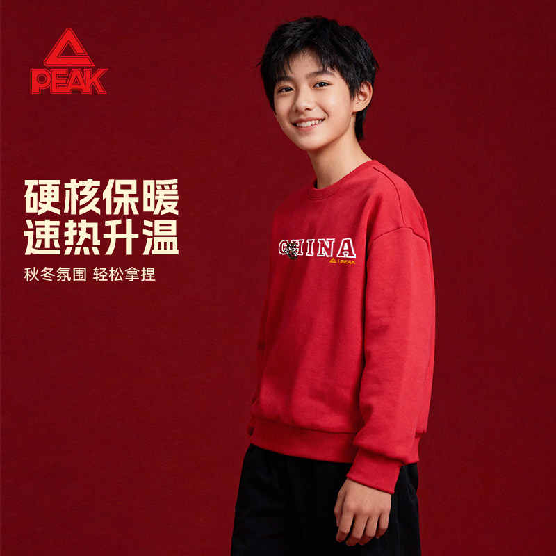 匹克童装儿童拜年服女童红色加绒卫衣秋冬款青少年本命年过年衣服