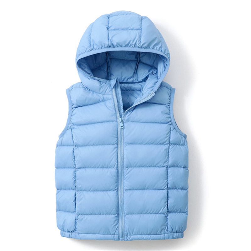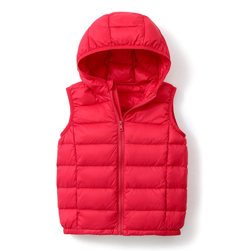跨境货源儿童轻薄羽绒服男款女款马甲连帽中大童短款90绒保暖外搭