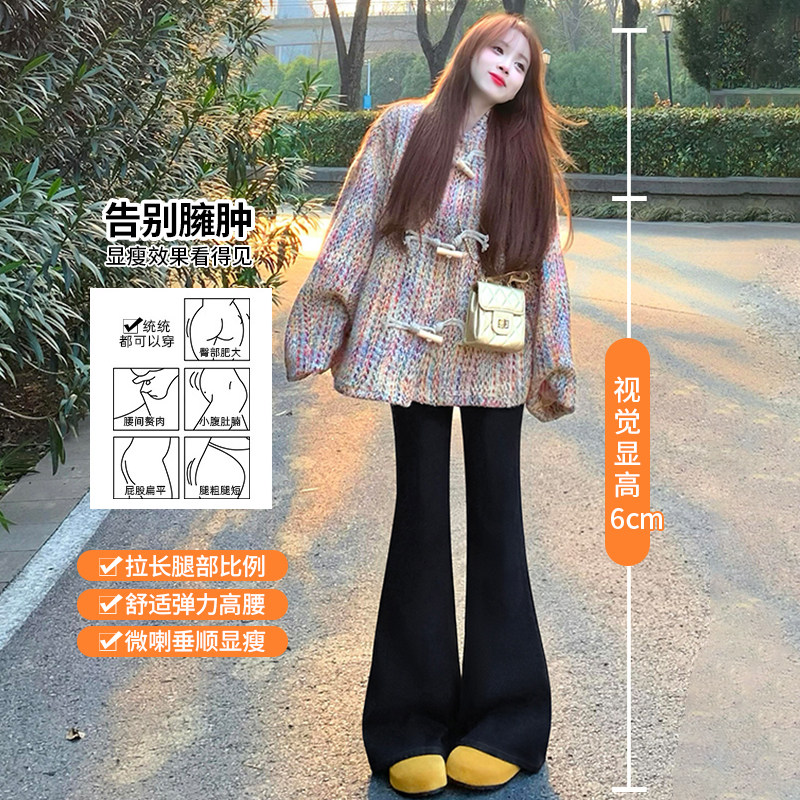 特厚微喇鲨鱼裤女高个子加长打底棉裤外穿秋冬加绒加厚瑜伽喇叭裤