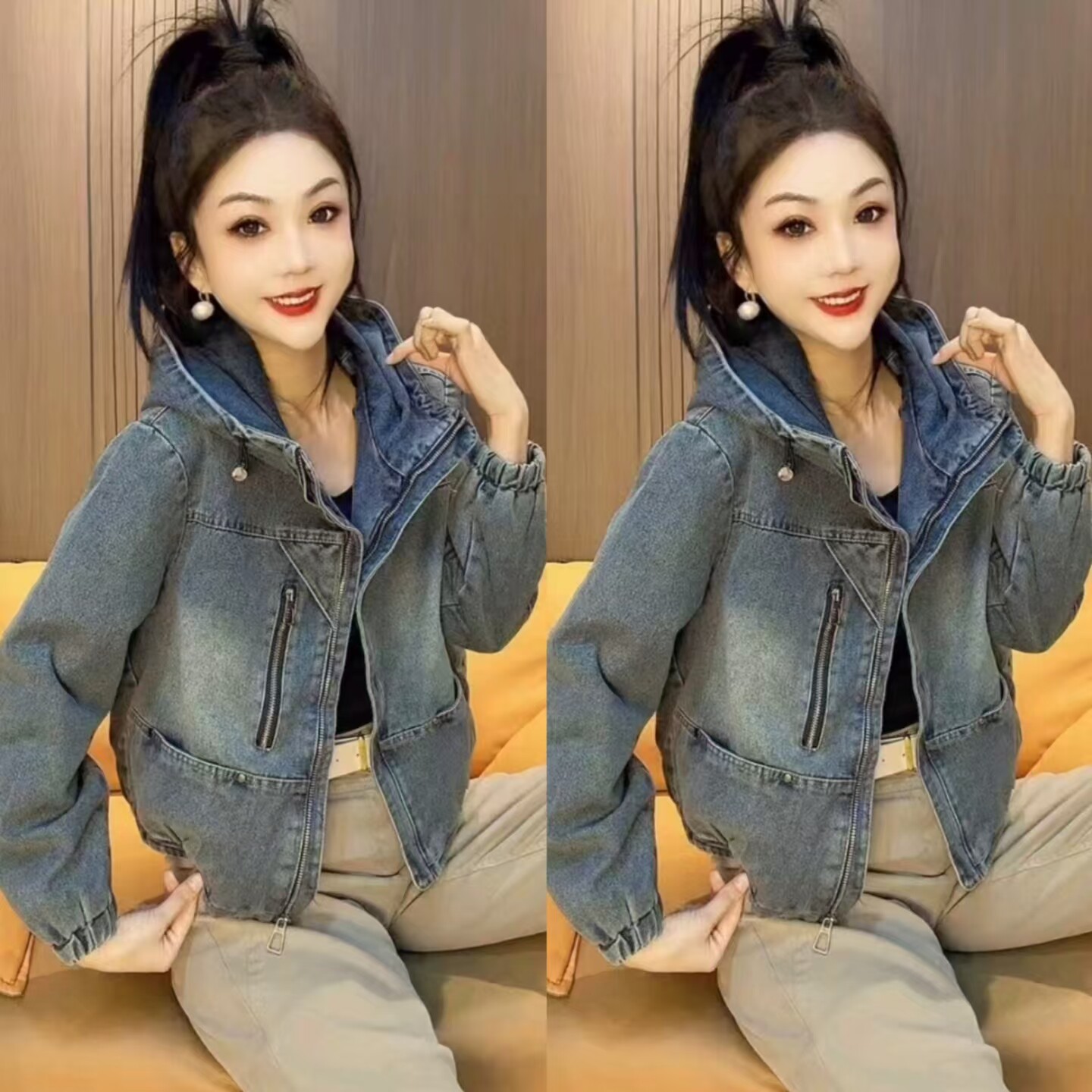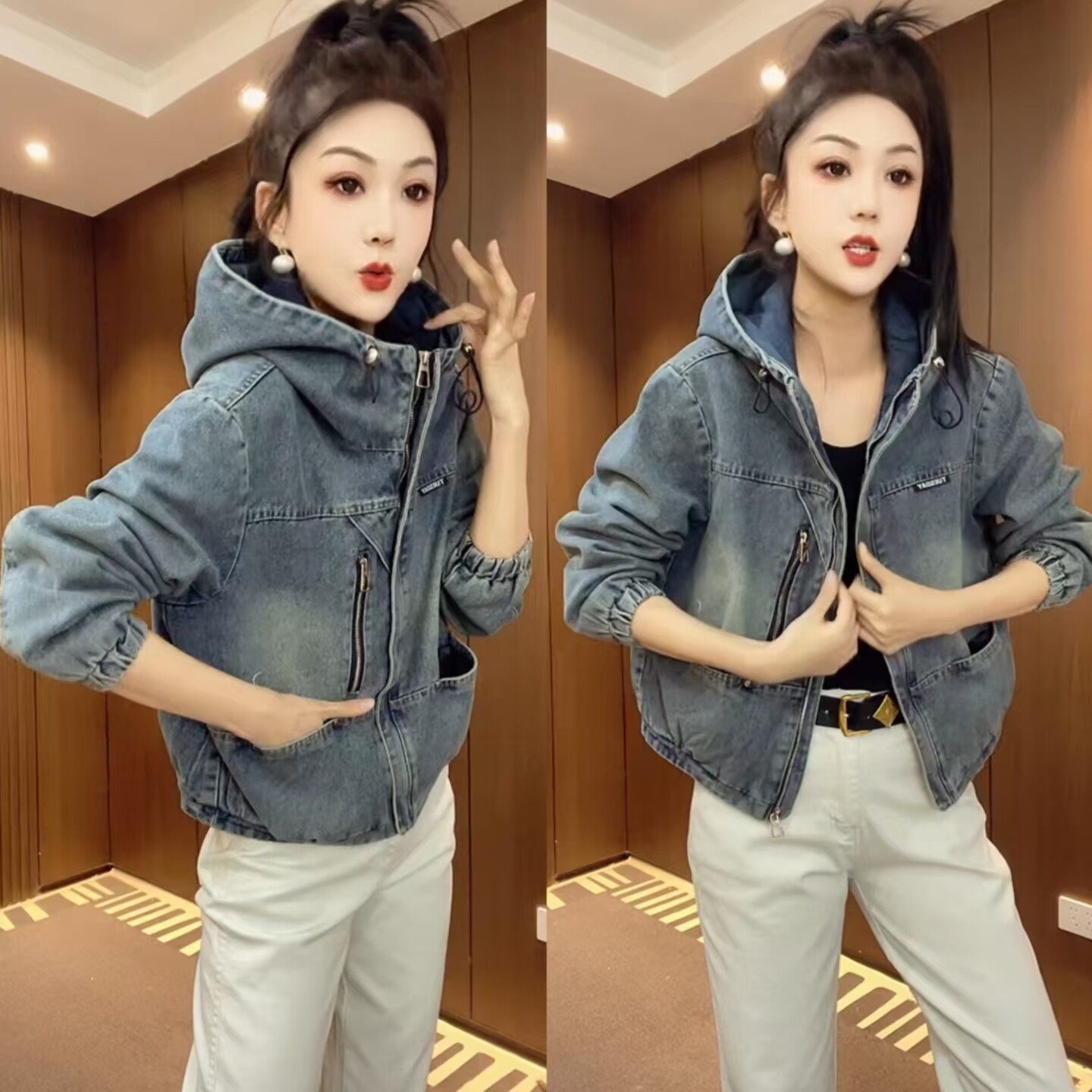 欧货连帽牛仔外套短款宽松显瘦品质薄棉上衣2026年春季新款外衣潮