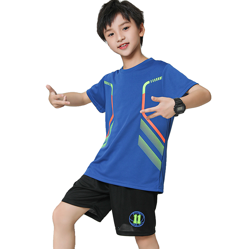 儿童运动套装夏季新款男童速干短袖短裤两件套蓝球服训练服